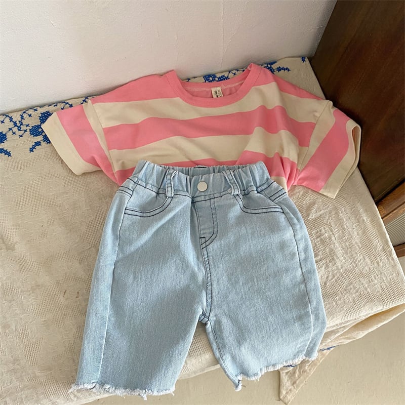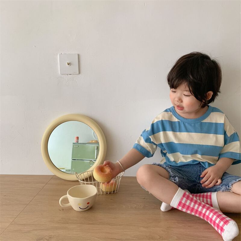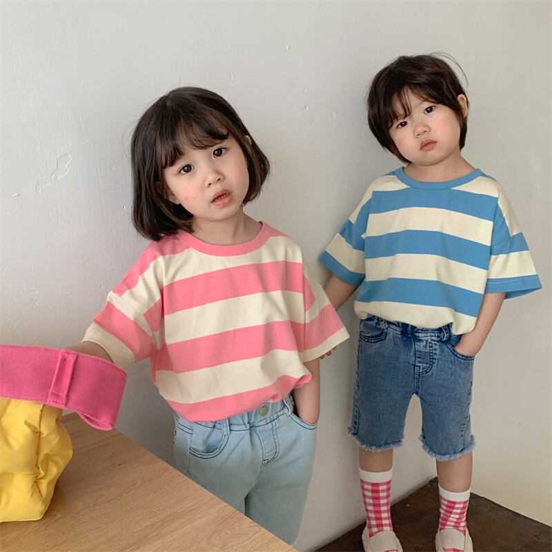 【海外からの取り寄せ】ins 夏新作 子供服 キッズ ストライプ柄 半袖 Tシャツ カジュアル トップス 可愛い おしゃれ 2色 #[ckd1095700_12000]【送料込み】【260422】