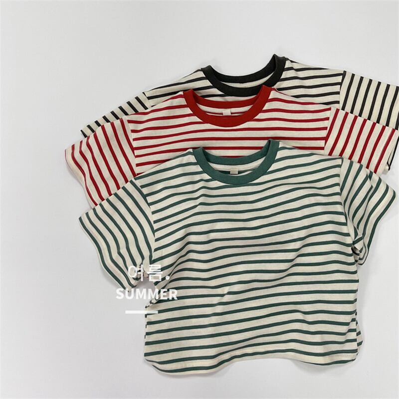 【海外からの取り寄せ】ins 夏新作 子供服 キッズ ストライプ柄 半袖 Tシャツ カジュアル トップス 可愛い おしゃれ 3色 #[ckd1095699_13000]【送料込み】【260422】