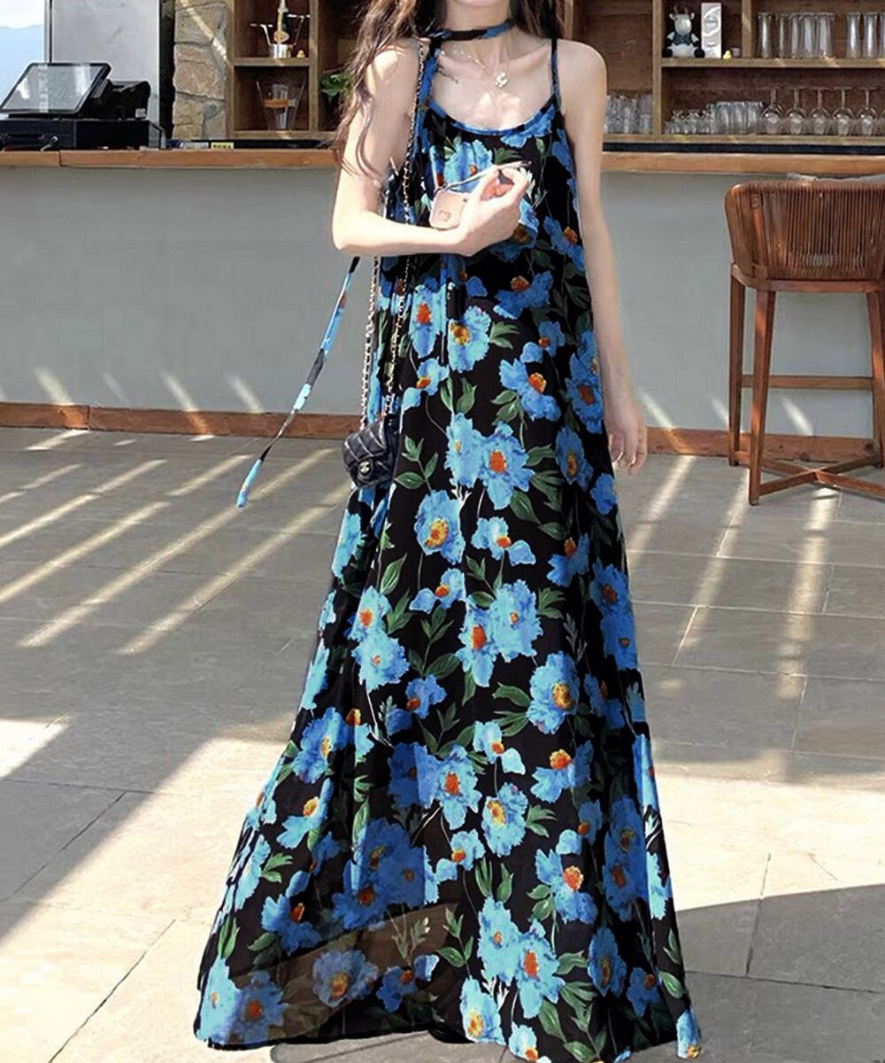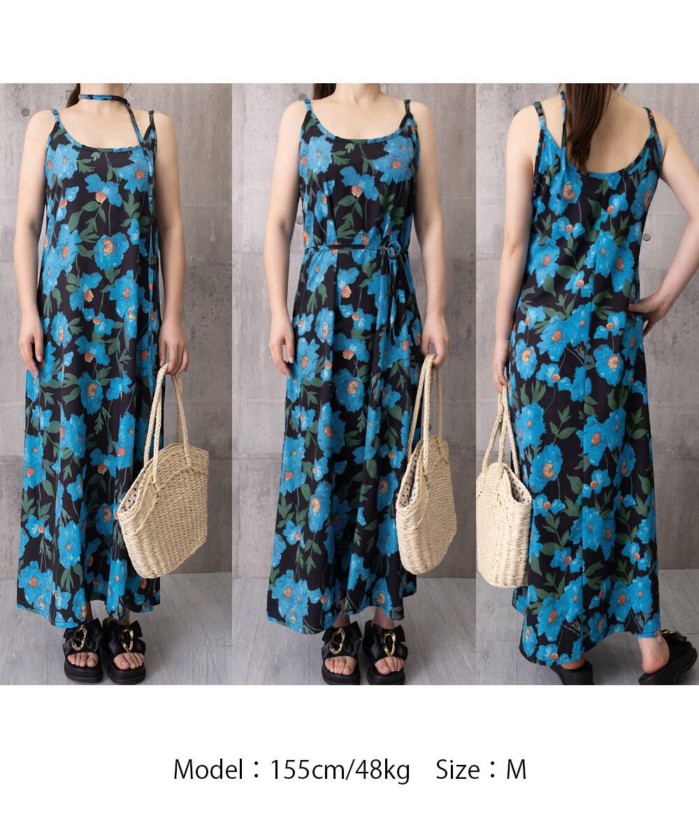 【日本倉庫からの発送】 花柄キャミワンピースAラインロングワンピ #[92QRM-001_23100]【送料込み】【260422】