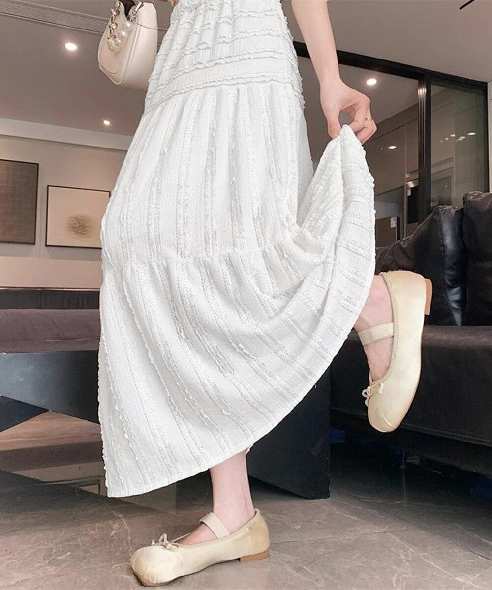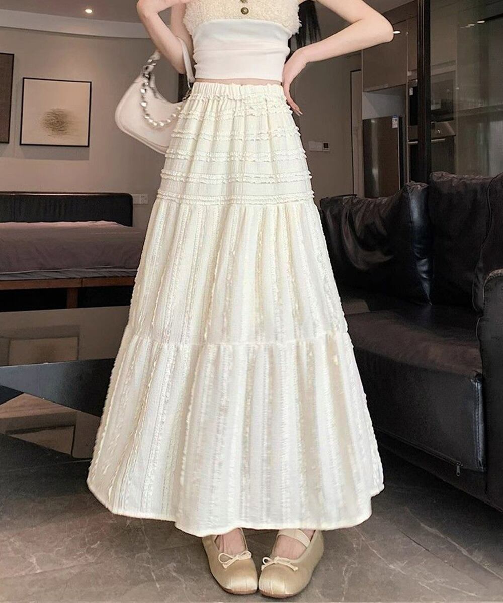大人可愛いスカート 清楚系スカート 白 体型カバースカート