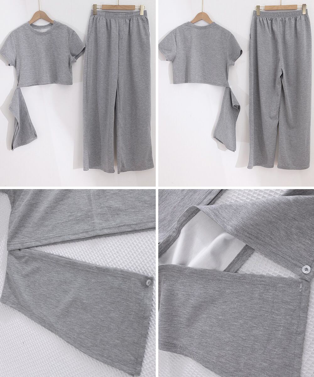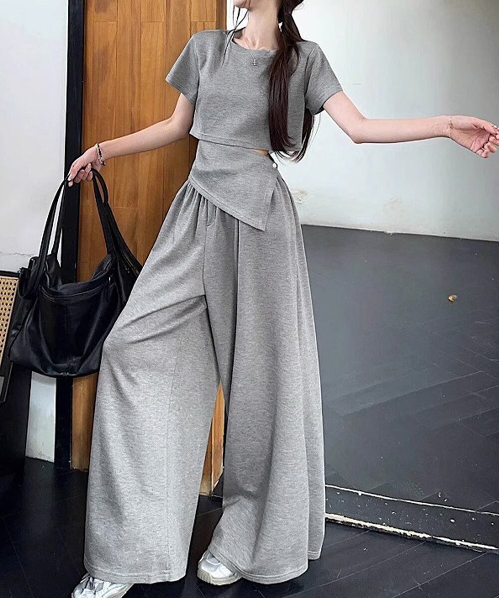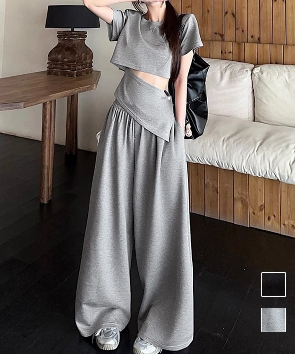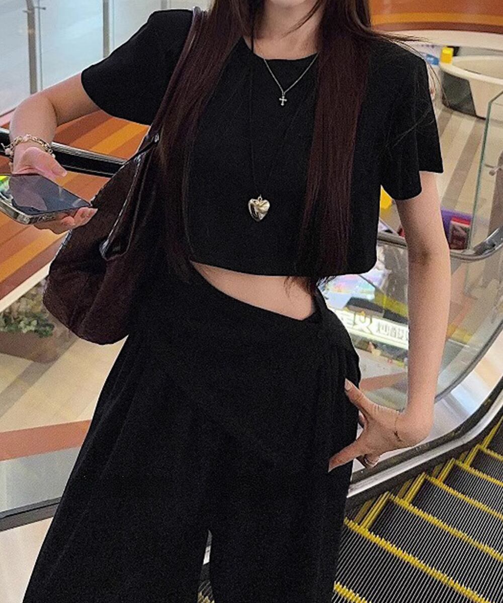 【日本倉庫からの発送】 クロップド丈トップス ワイドパンツセット #[80JIANAI-001_24600]【送料込み】【260422】