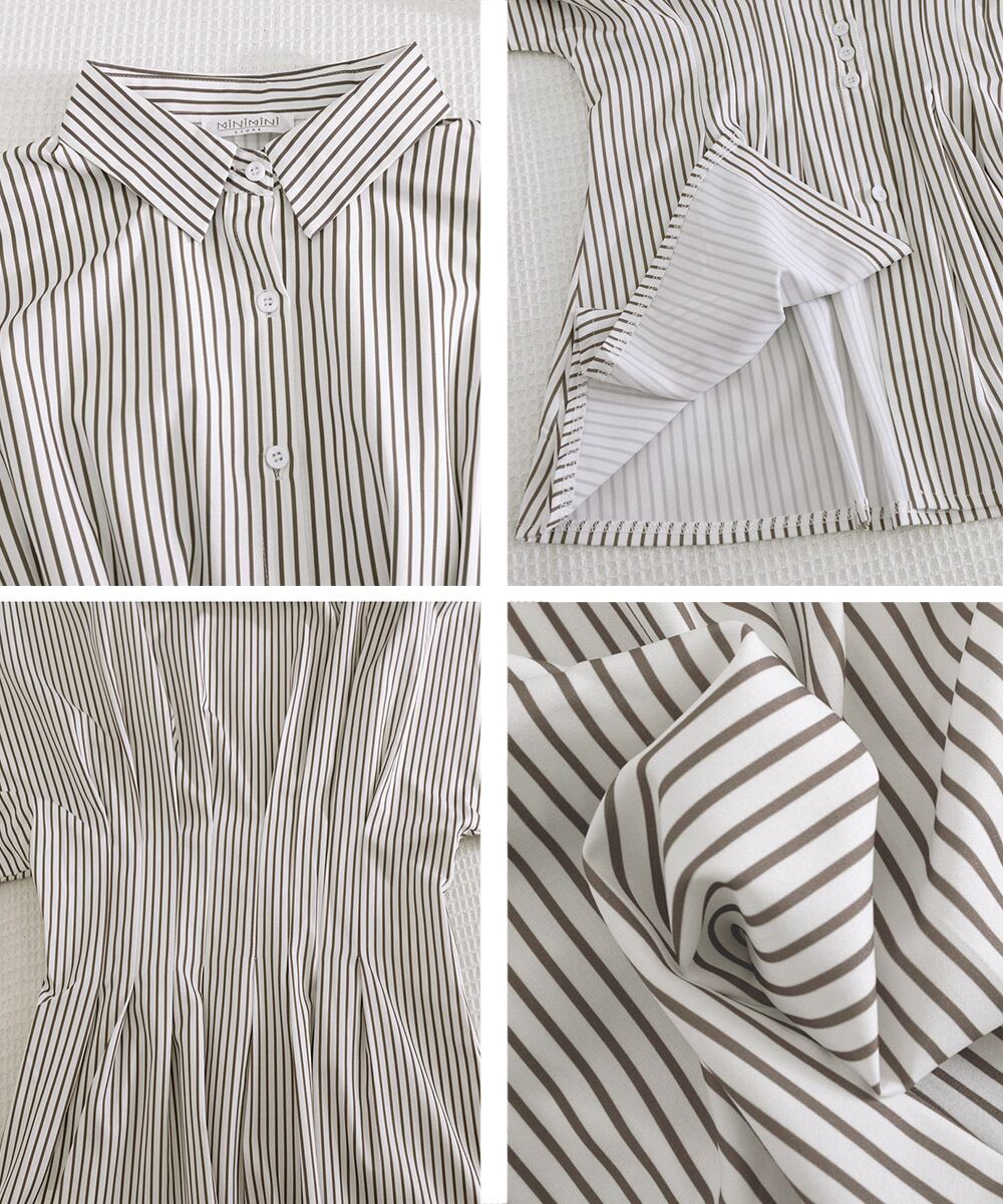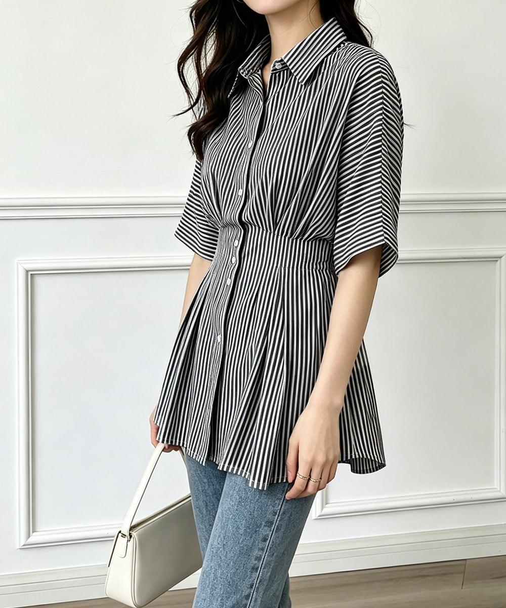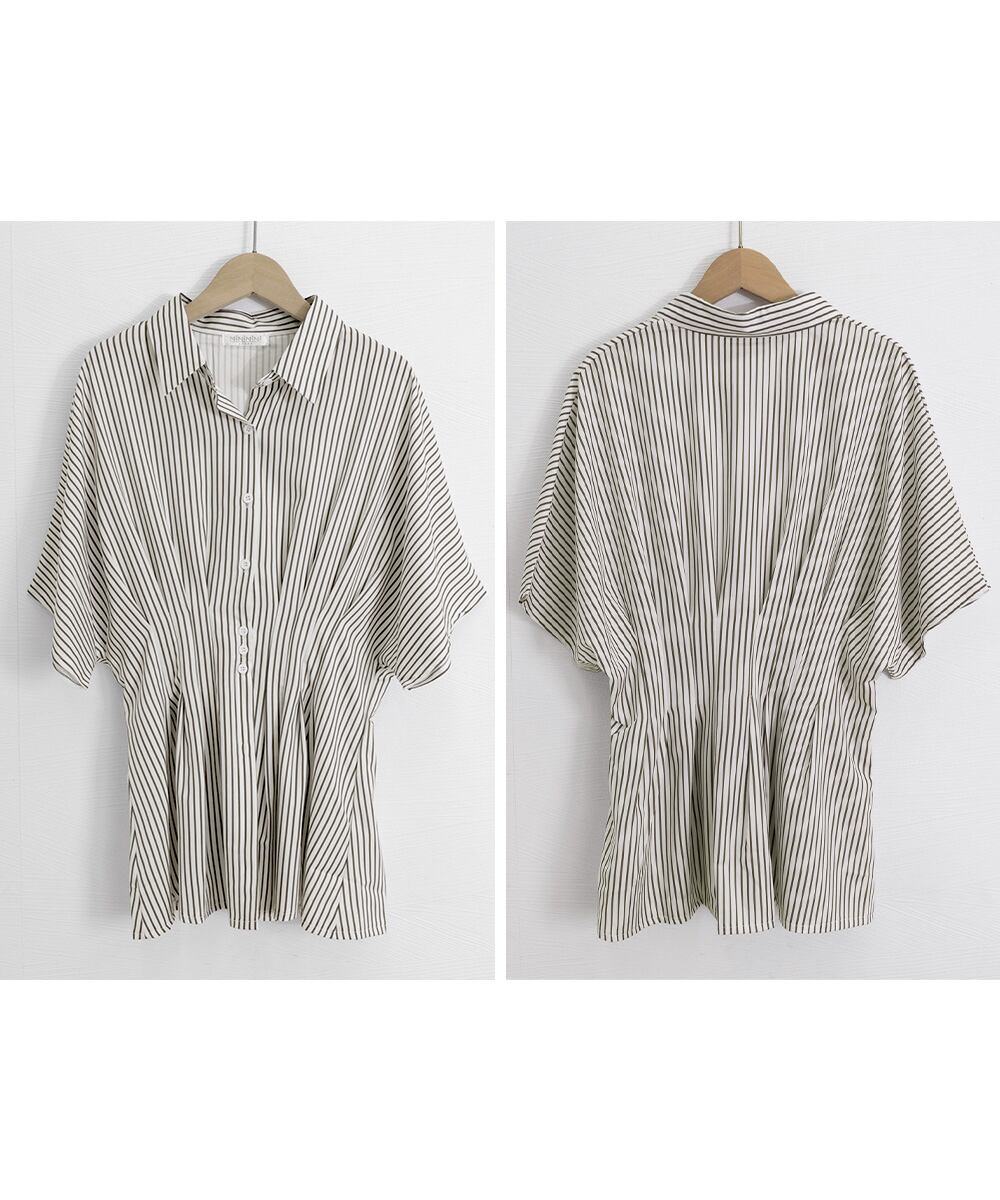 【日本倉庫からの発送】 ストライプシャツブラウス ウエストマーク #[2MNYN-001_25300]【送料込み】【260422】