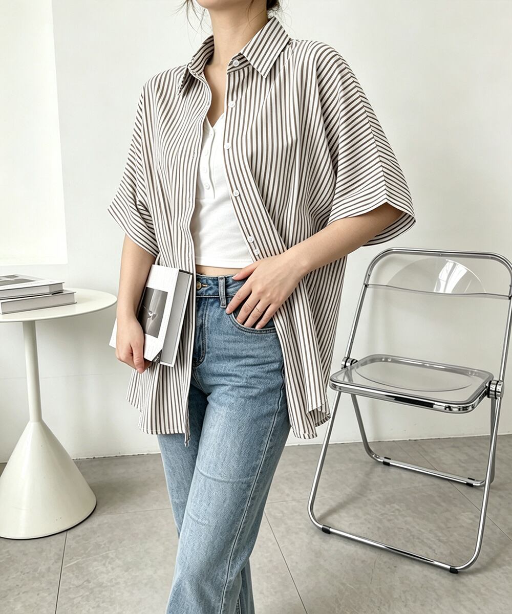 縦ラインブラウス夏