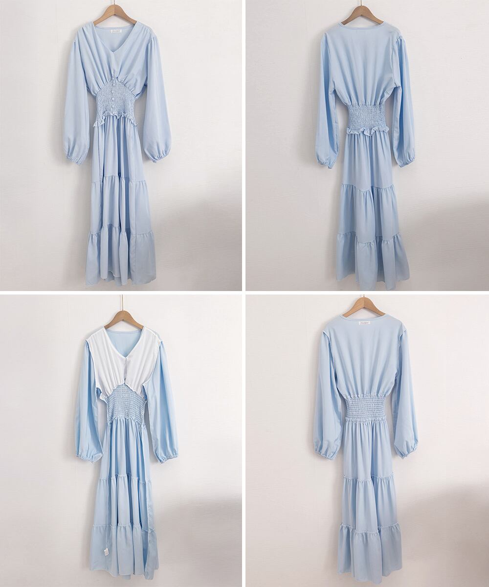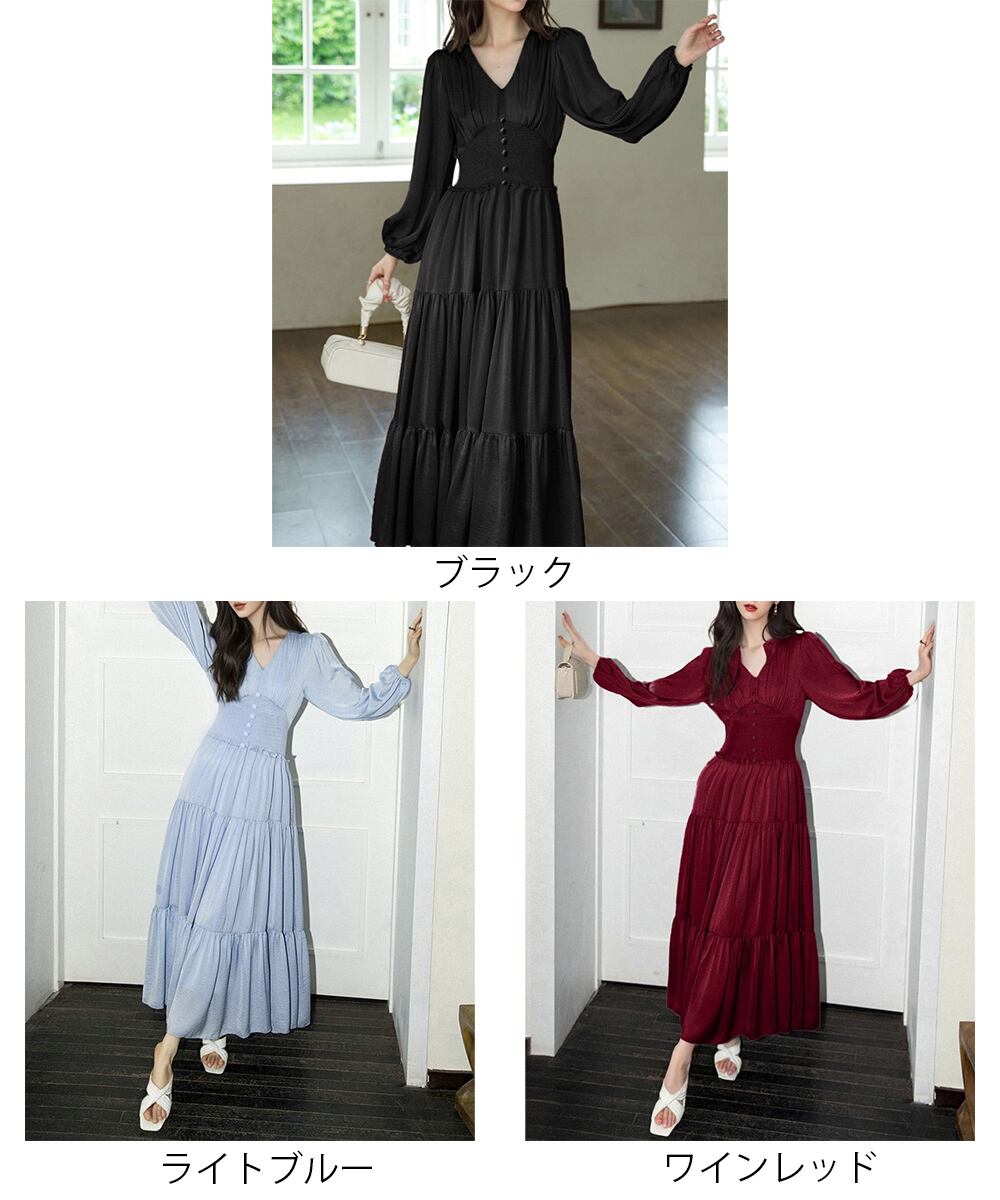 【日本倉庫からの発送】 ティアードワンピースVネックロングワンピ #[1YDG-008_23800]【送料込み】【260422】