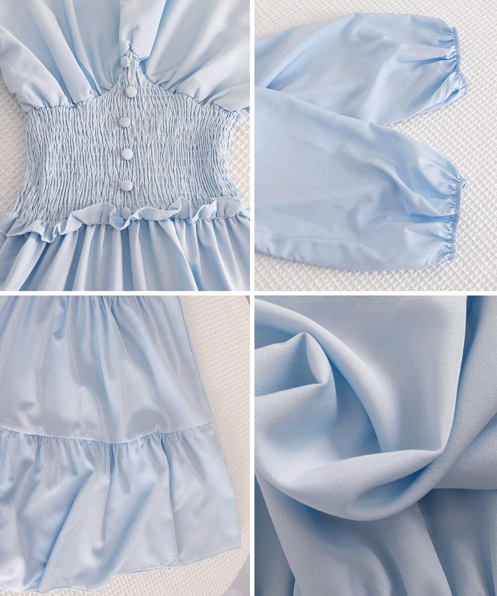 レディース シャーリングウエスト フレアワンピース ウェストマーク きれいめAラインワンピース 韓国風フリルワンピ細見え
