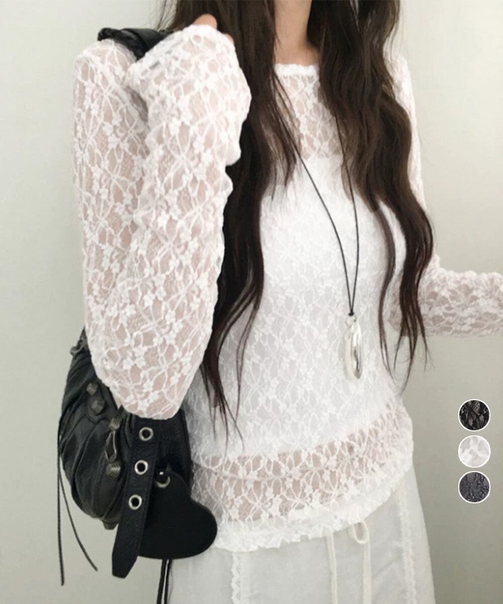 【日本倉庫からの発送】 シアーレーストップス 長袖レースインナー #[1CHENXINI-006_19300]【送料込み】【260422】