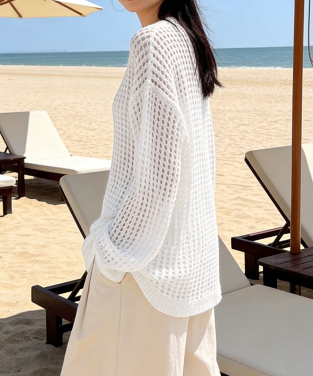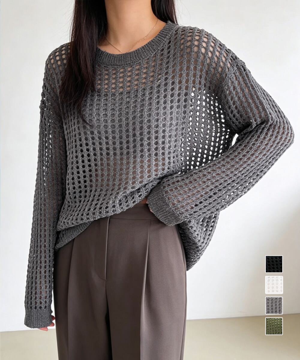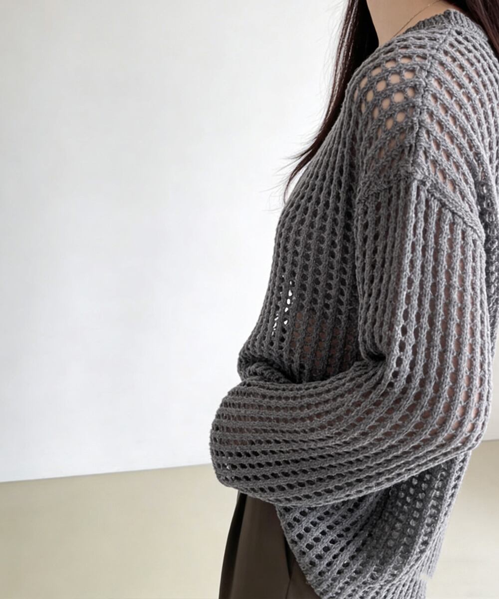 涼しげなメッシュ素材は通気性に優れている透かし編みニットです