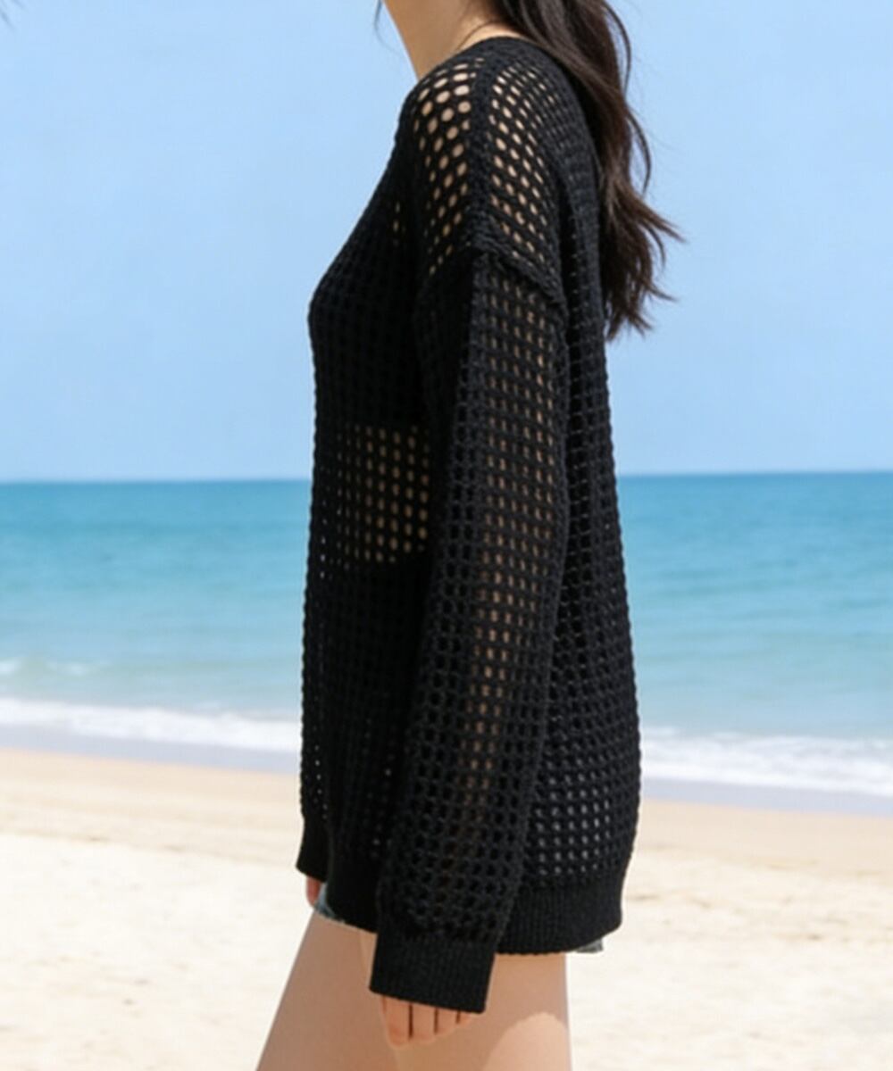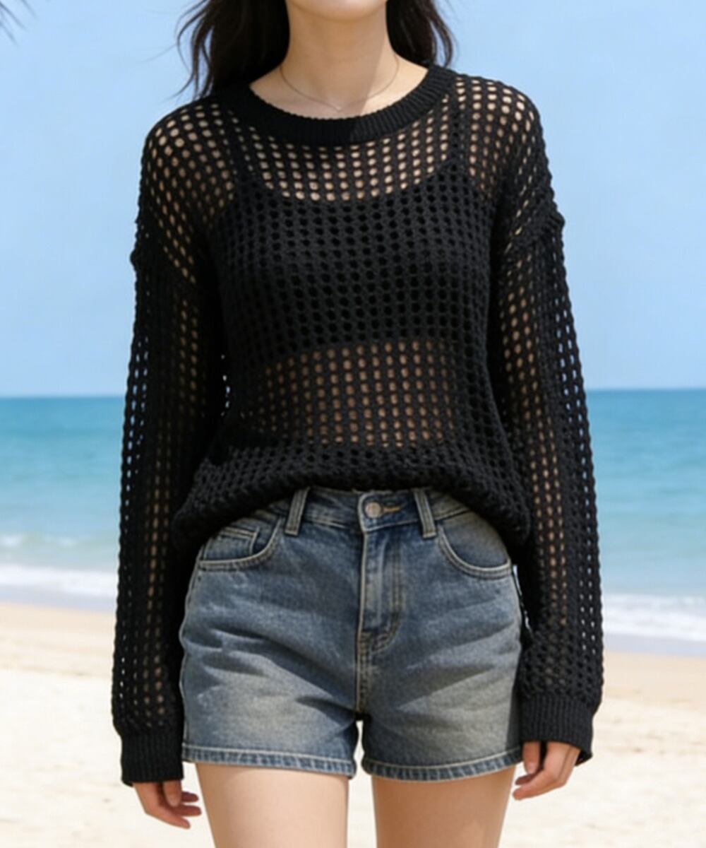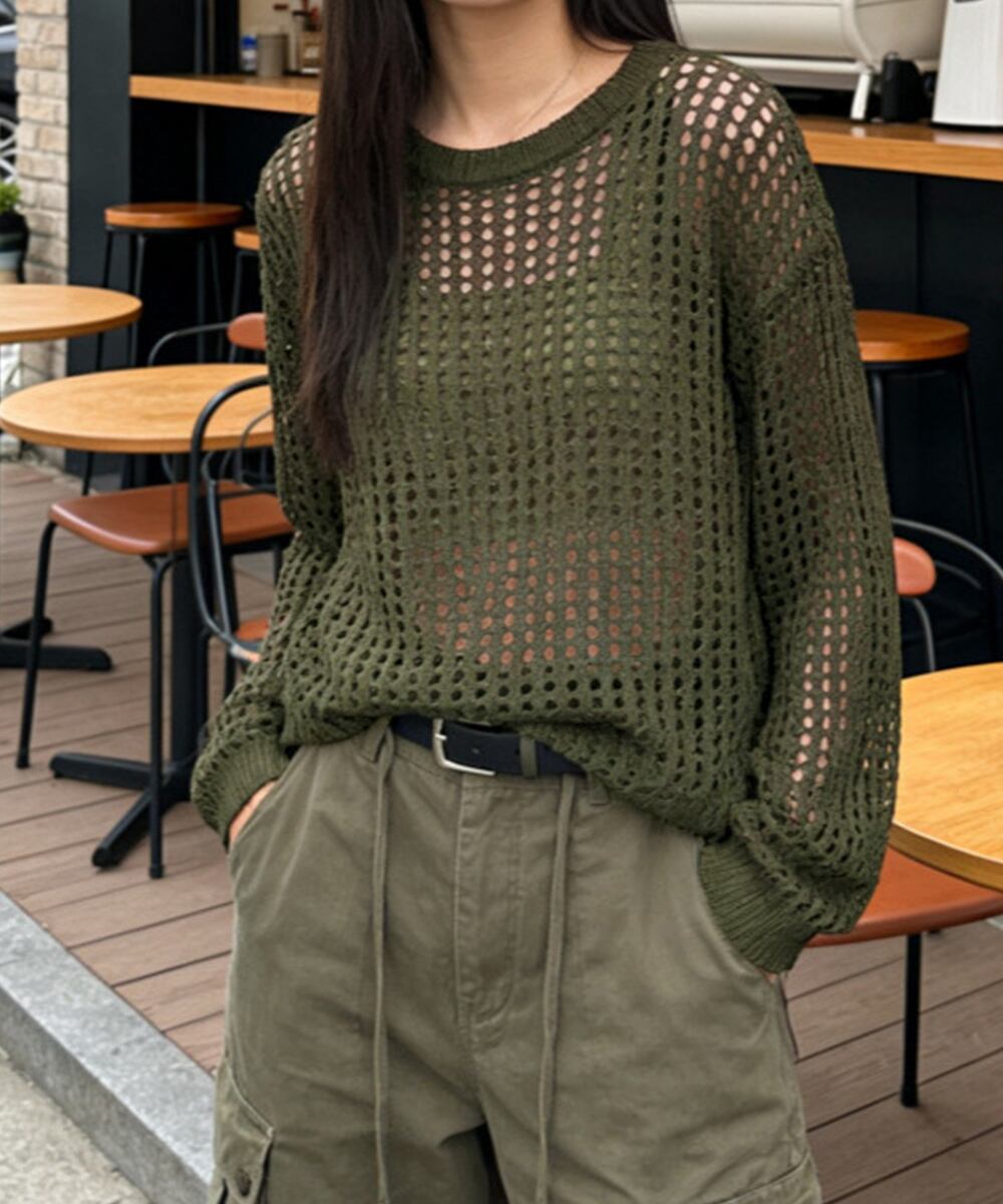 涼しげなメッシュ素材は通気性に優れている透かし編みニットです