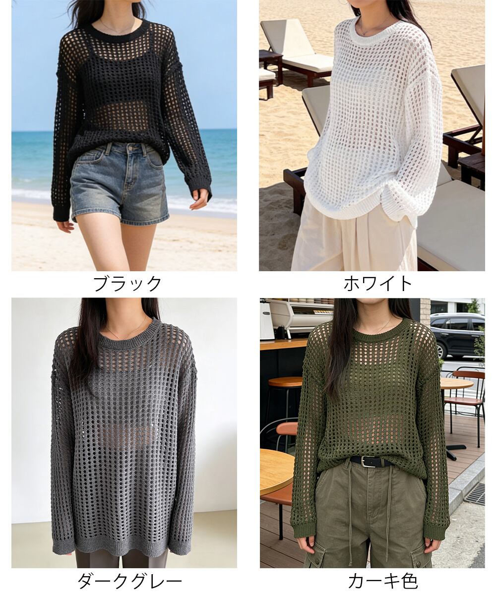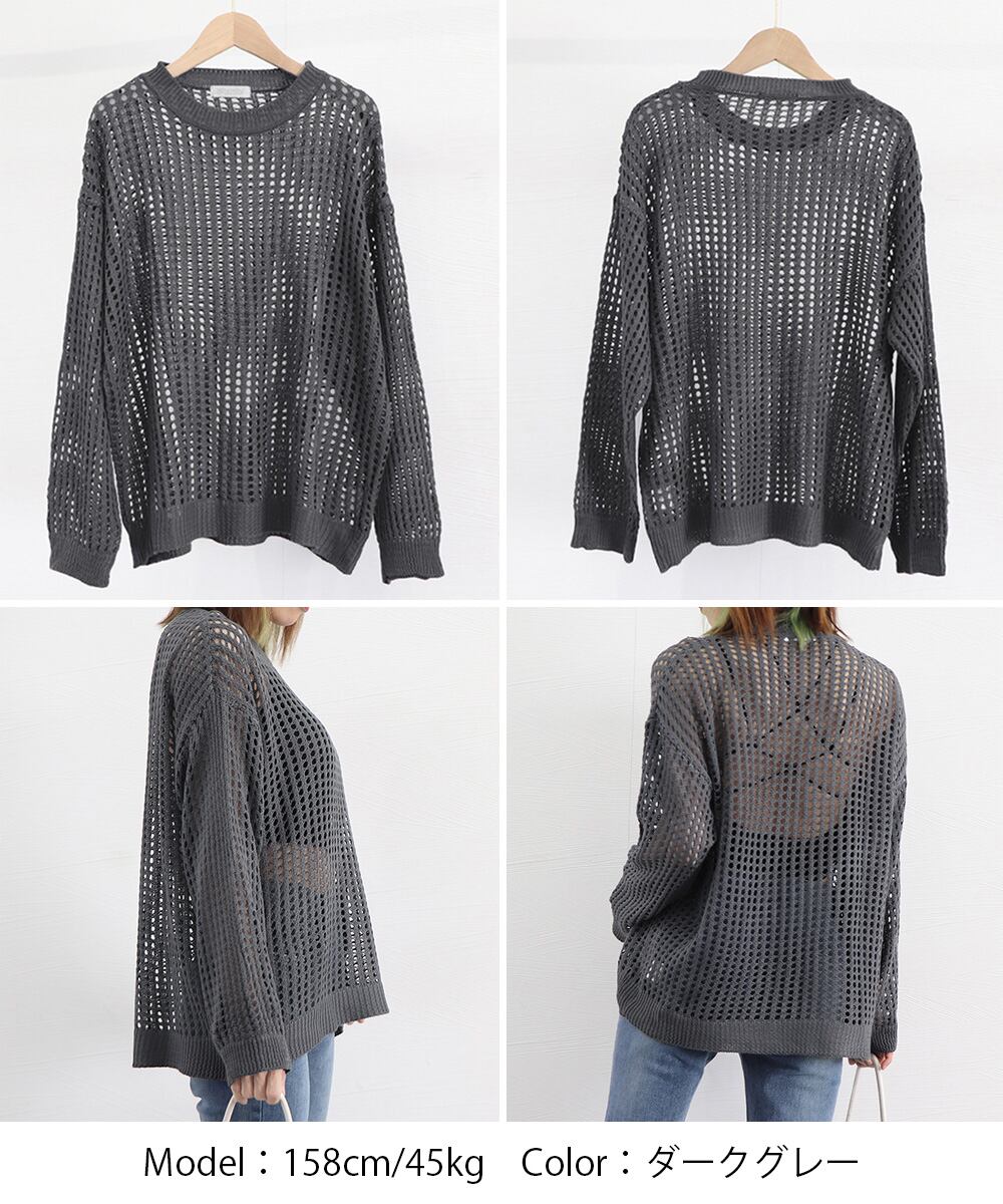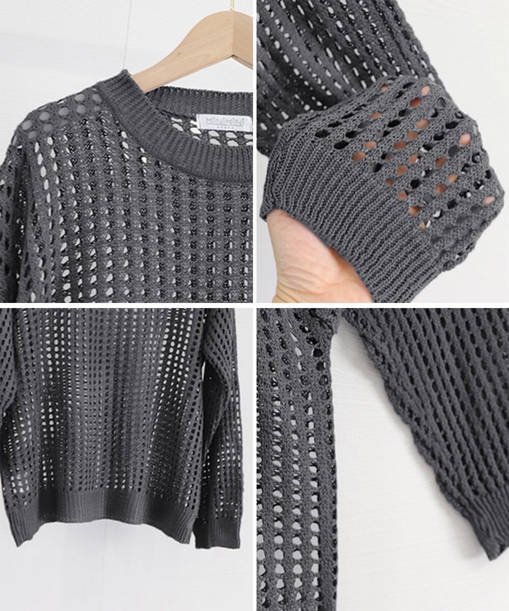【日本倉庫からの発送】 メッシュニット 透かし編みトップス 長袖 #[6XINANYT-030_15000]【送料込み】【260426】