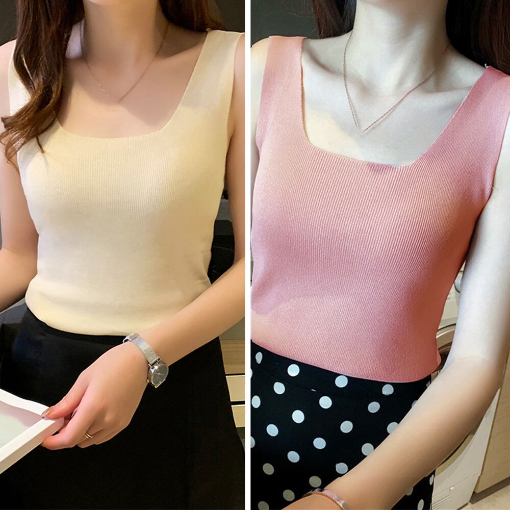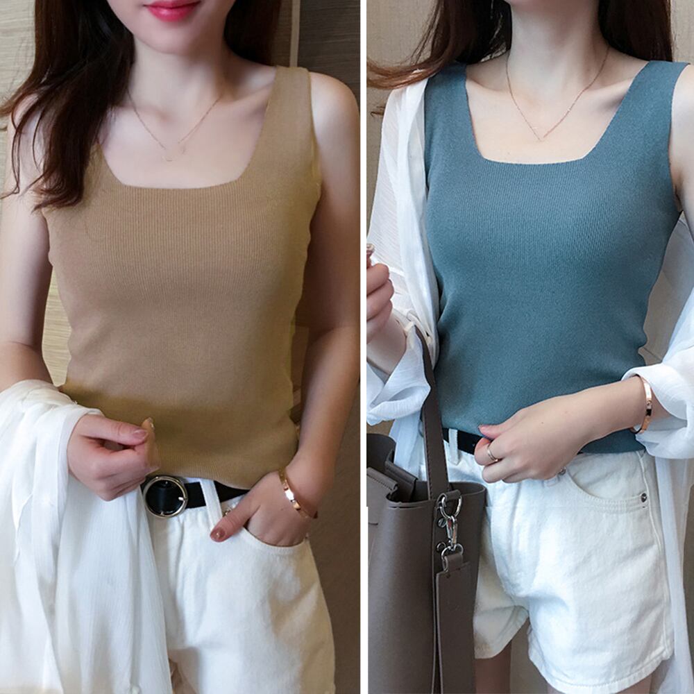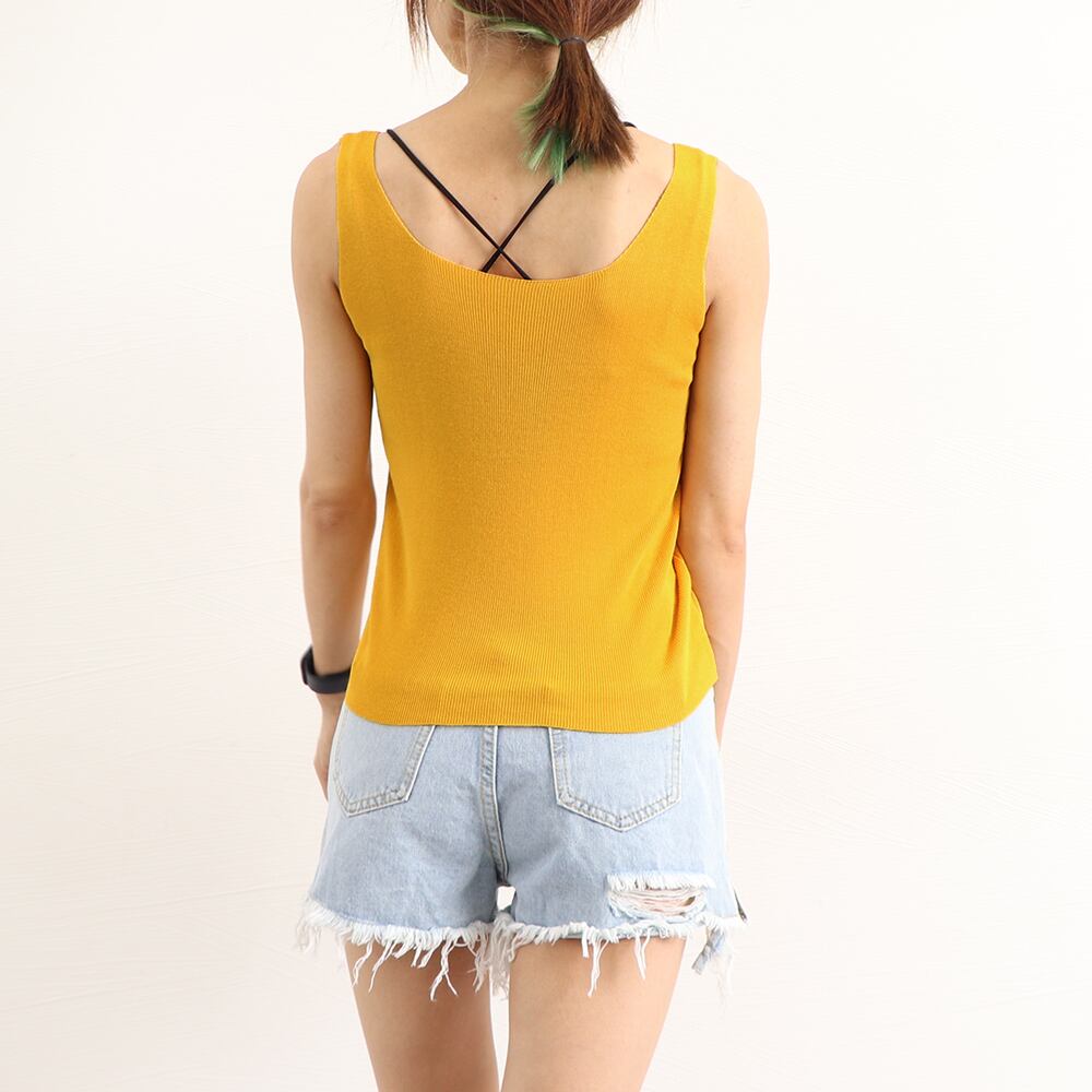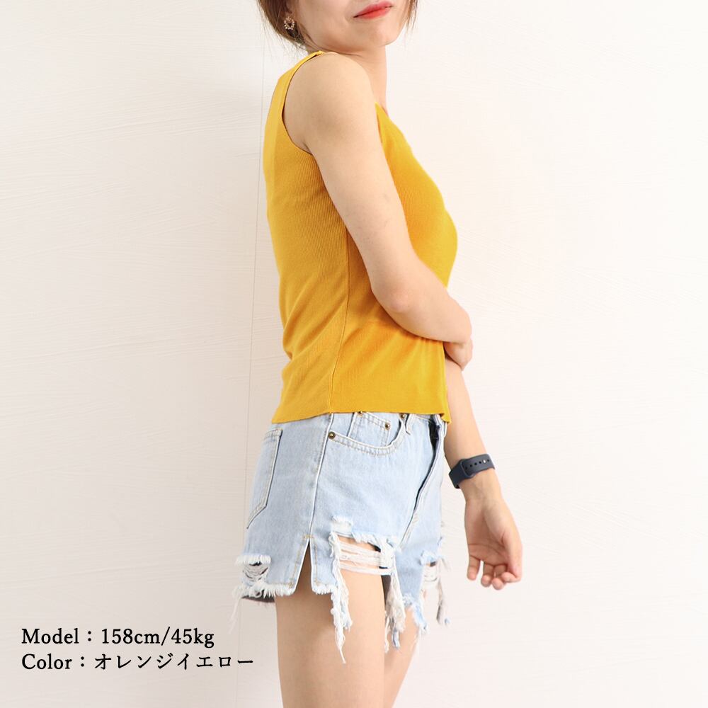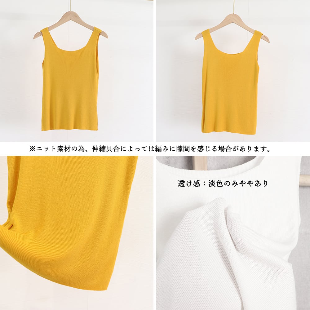シンプルなデザインで、様々なシーンでの着回しに最適なニットタンクトップです