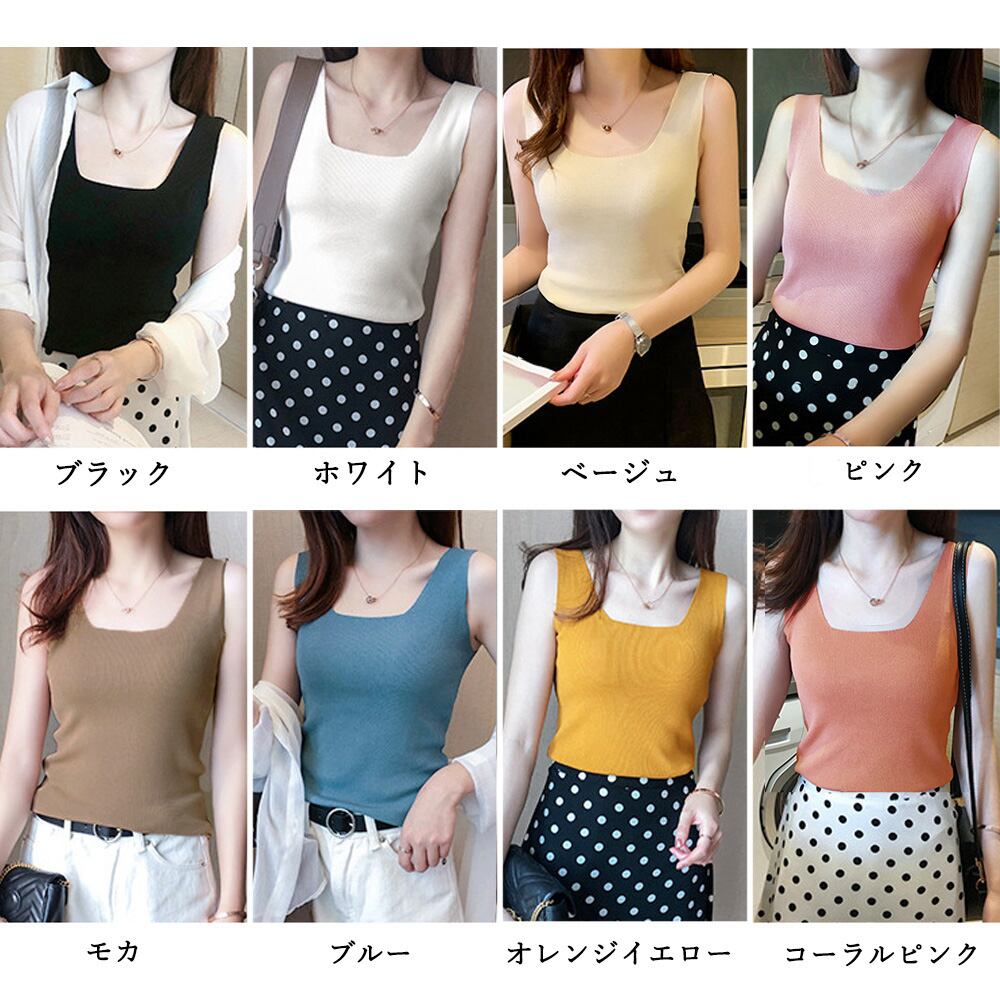 【日本倉庫からの発送】 タンクトップ スクエアネックサマーニット #[1ZHJF-034_8100]【送料込み】【260426】