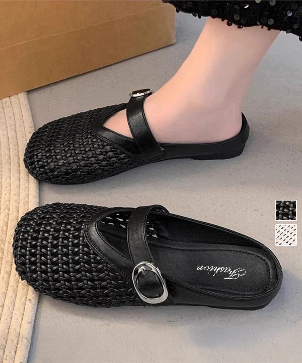 通気性の良い編み込みデザインで、蒸れにくくシンプルながらもおしゃれな一足。