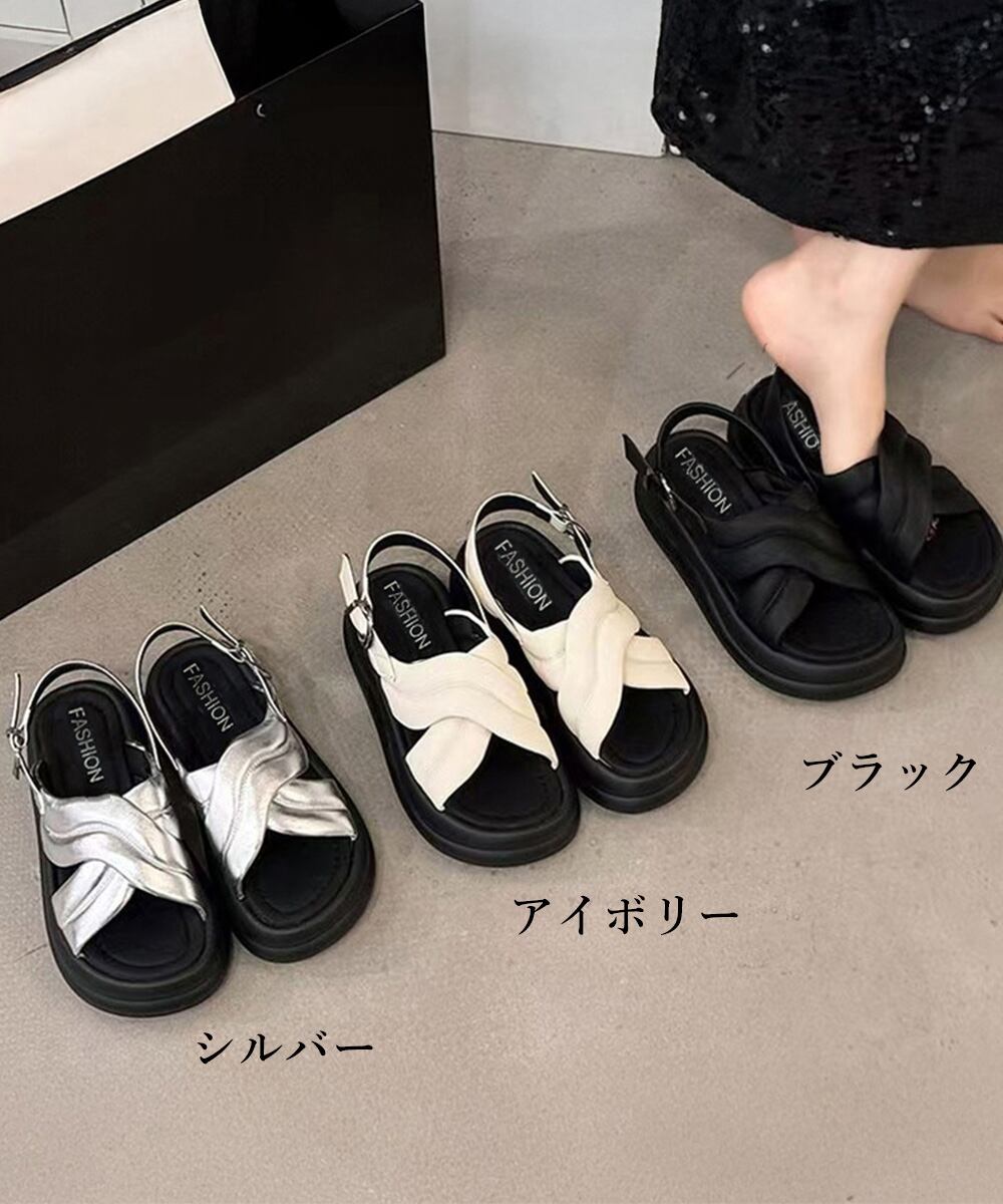 【日本倉庫からの発送】 クロスストラップサンダル厚底シューズ夏靴 #[86JIANL-062_23800]【送料込み】【260426】