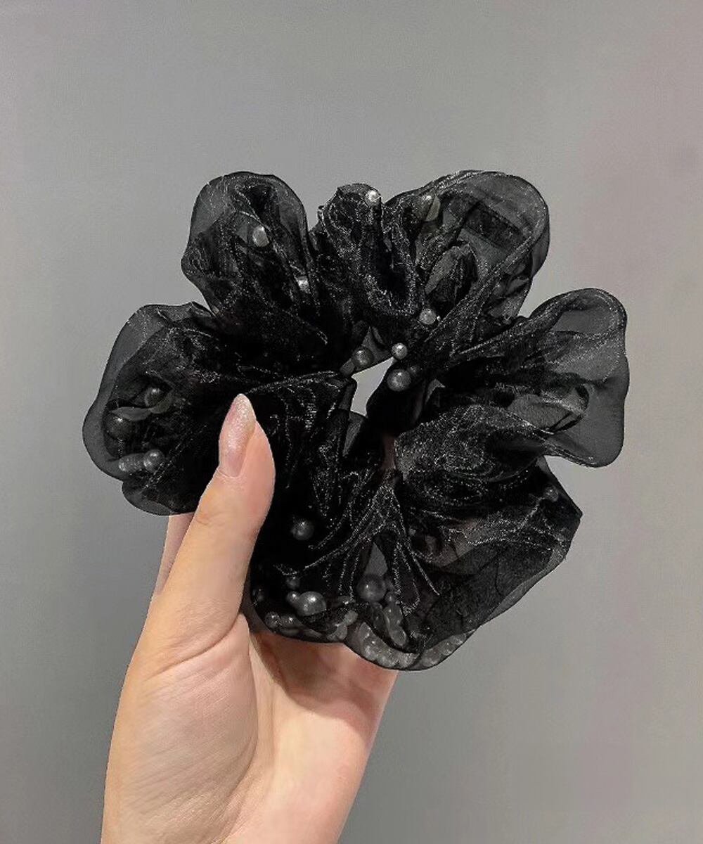 【日本倉庫からの発送】 チュールシュシュ パール付きヘアゴム 黒 #[99XHSP-005_6700]【送料込み】【260426】