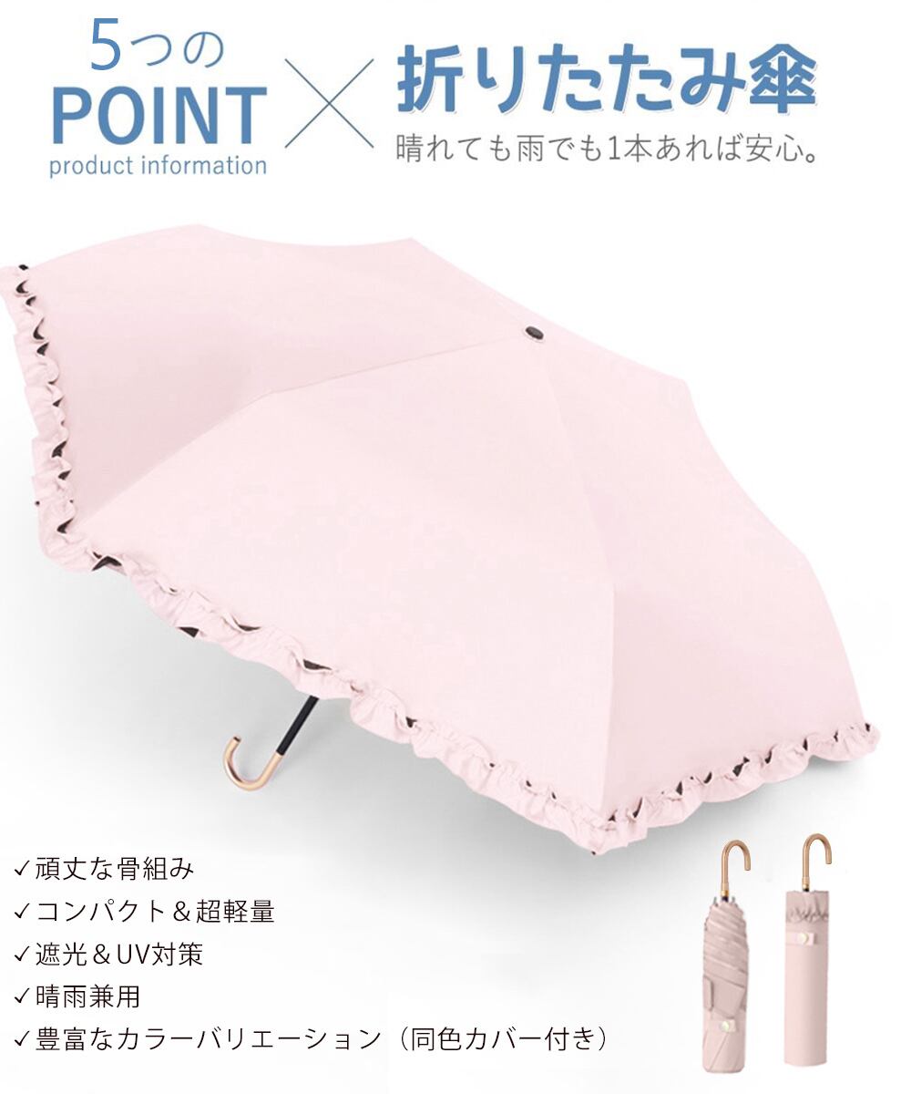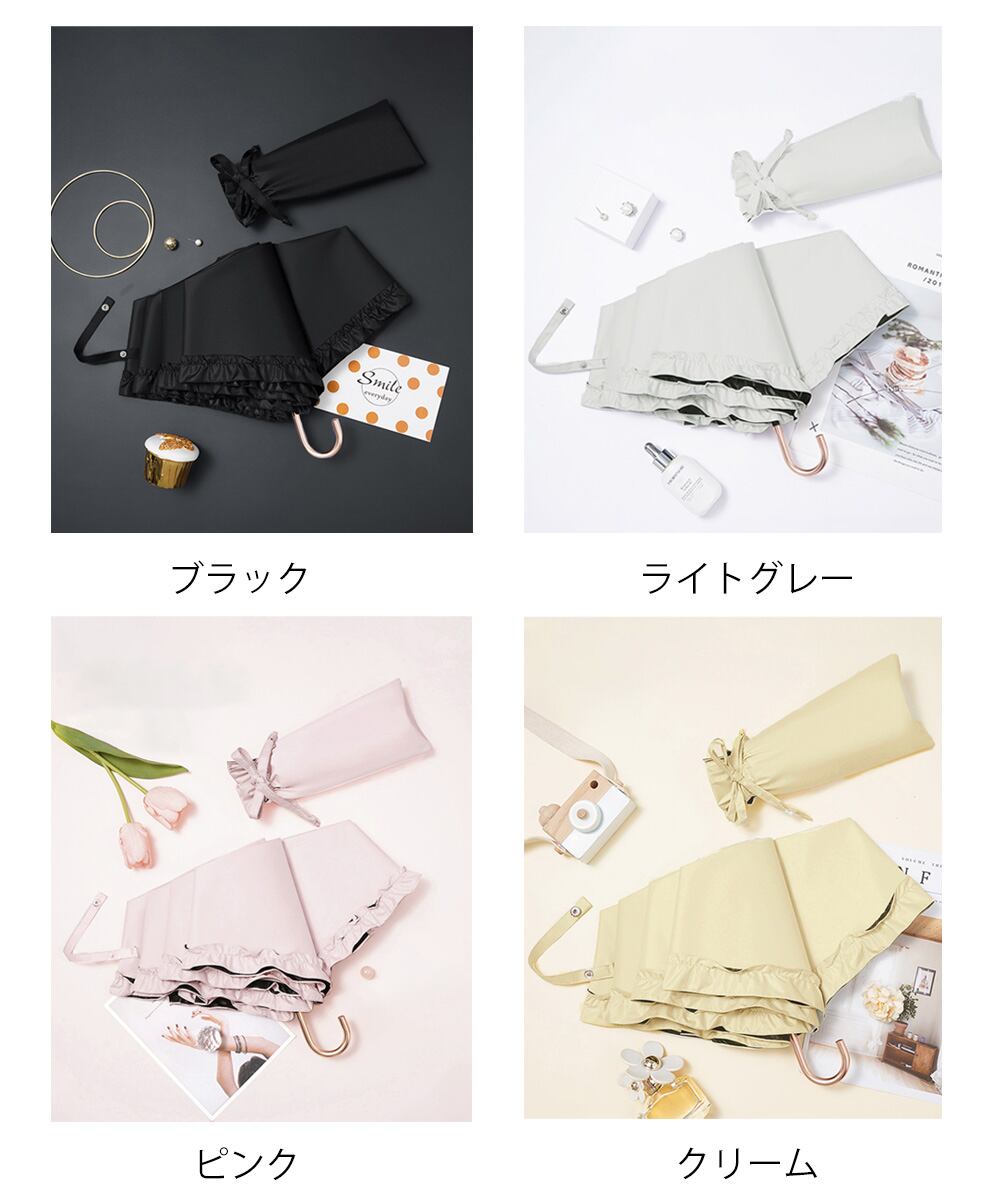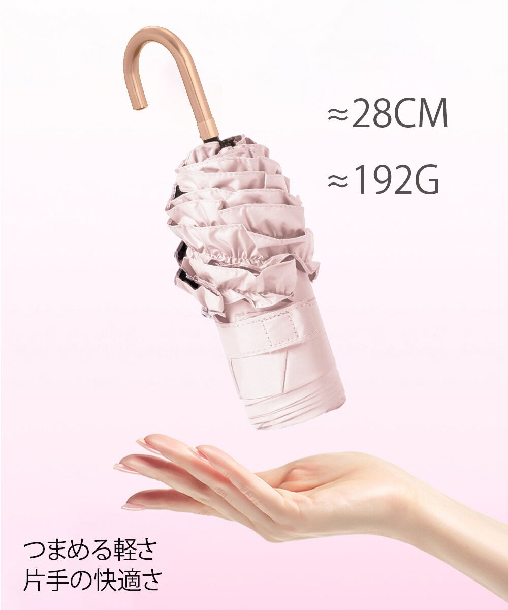 閉じても開いてもフリルが華やかに映える、フェミニンな折りたたみ傘。