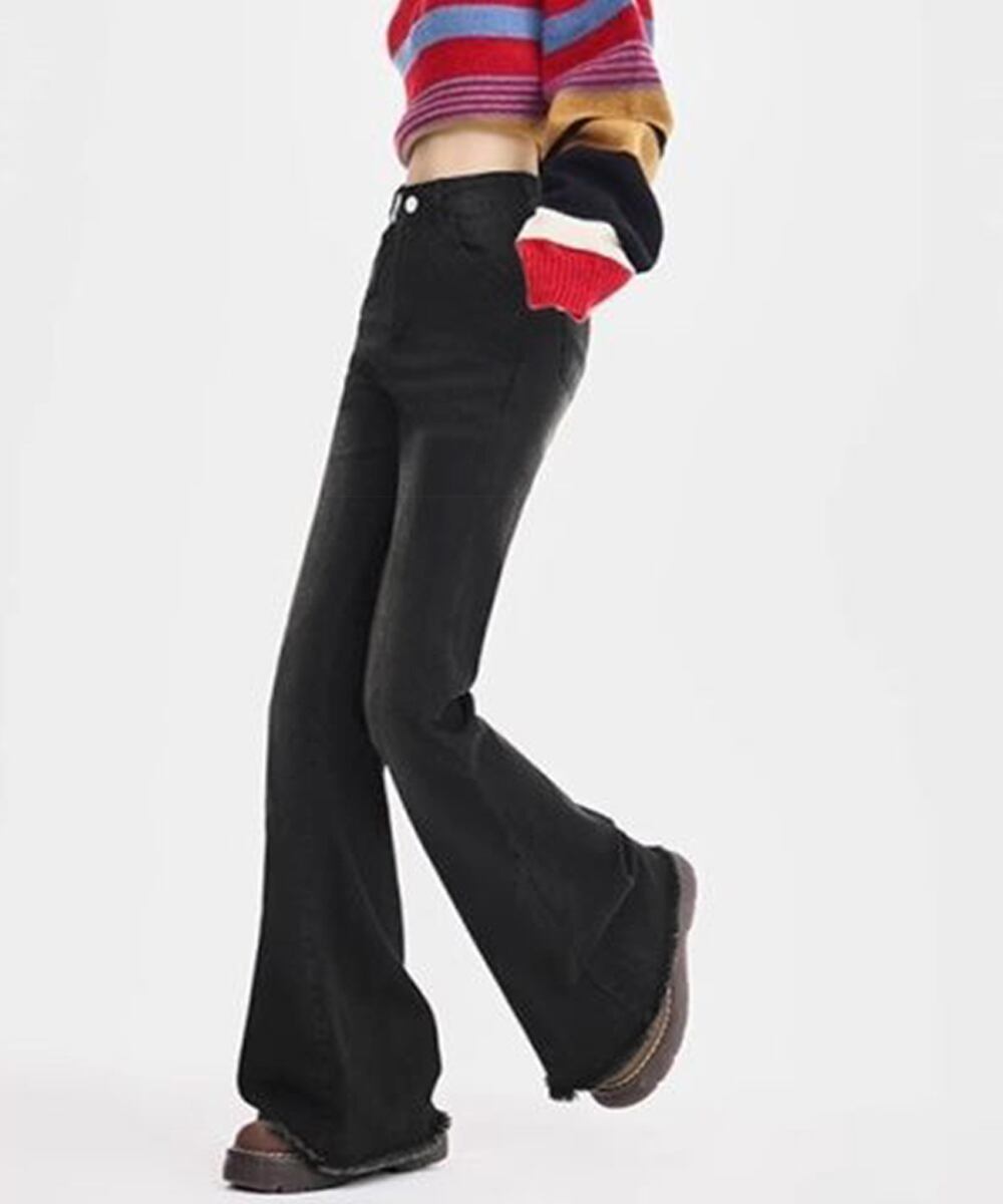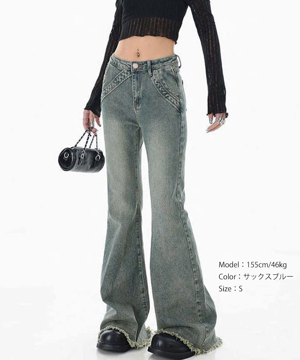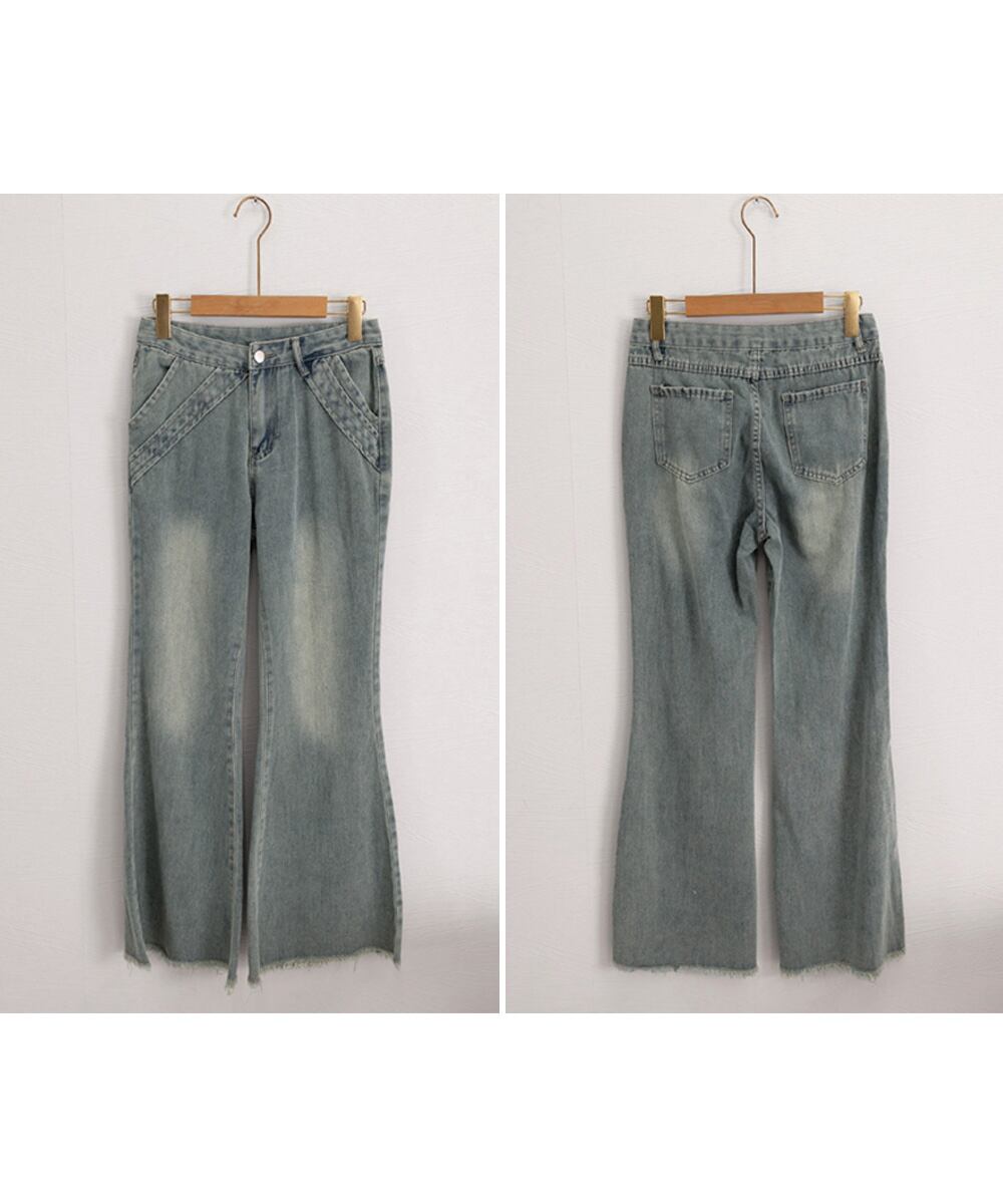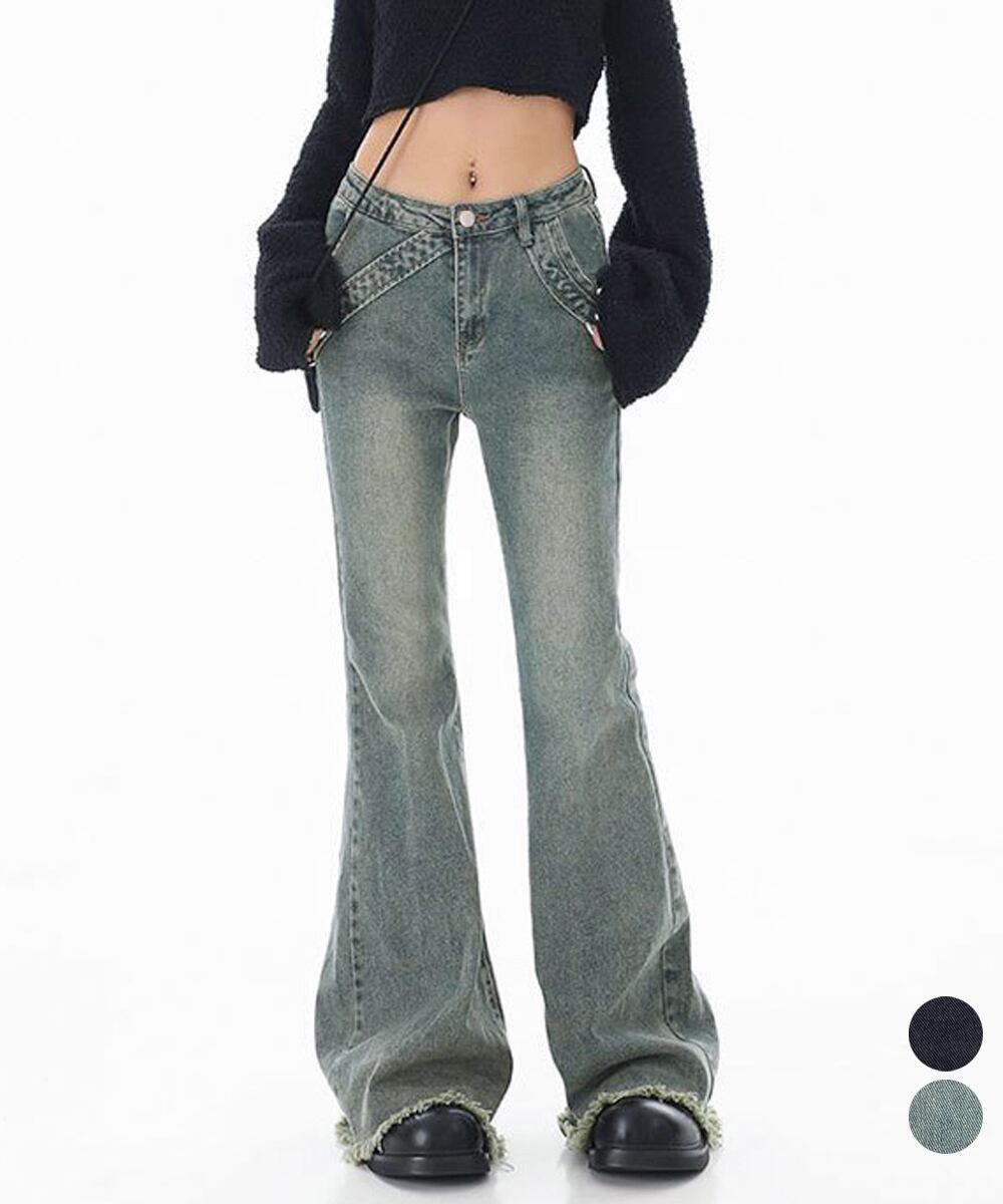 【日本倉庫からの発送】 裾フリンジフレアデニムパンツ ローエッジ #[84FANHE-001_29100]【送料込み】【260426】