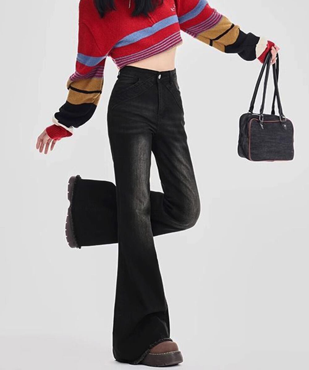 ベルボトムジーンズ レディース ヴィンテージ風ロングパンツ着やせ 美脚脚長ブーツカットデニム 細見えジーパン細身ボトムス