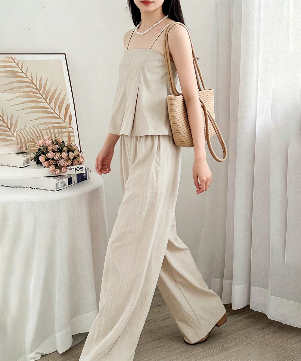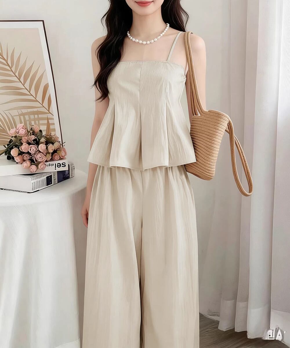 【日本倉庫からの発送】 ペプラムキャミソール ワイドパンツセット #[83HUAYI-001_34300]【送料込み】【260426】