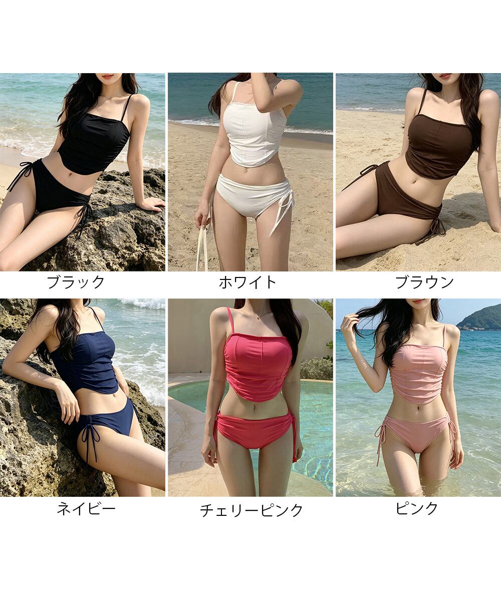 キャミビキニ サイドリボンショートパンツ 上下セット 大人可愛い スイムウェア おしゃれ水着 水遊び 海辺夏 盛れる水着