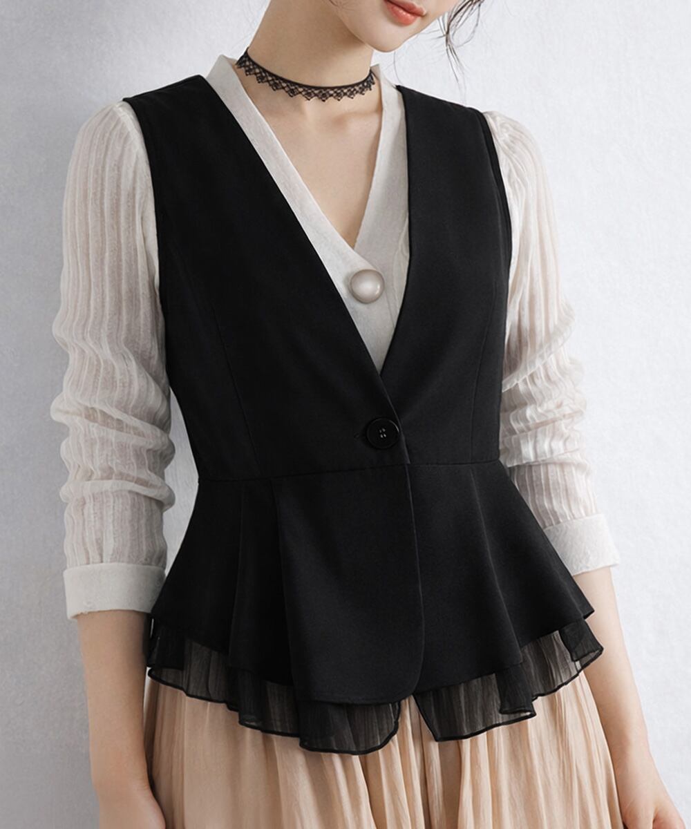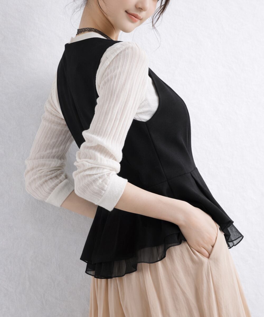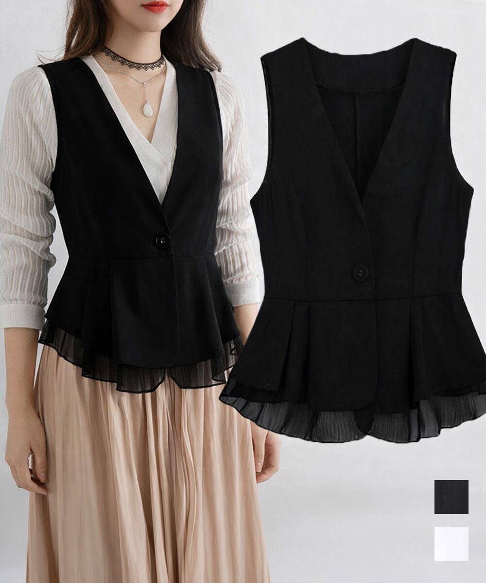 【日本倉庫からの発送】 Vネックペプラムジレベスト シフォン切替 #[1SUIFAN-008_20100]【送料込み】【260426】
