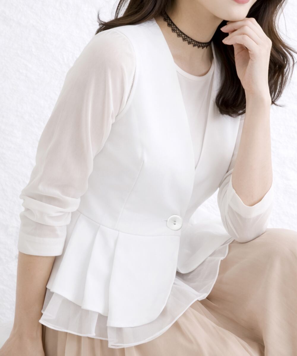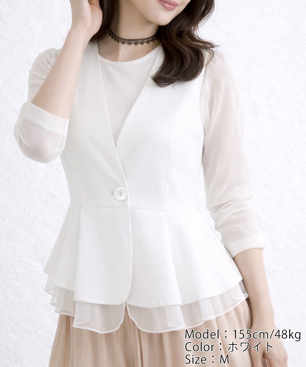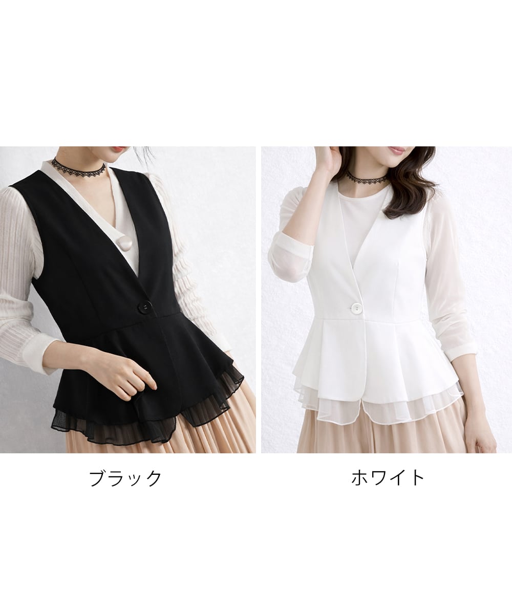 【日本倉庫からの発送】 Vネックペプラムジレベスト シフォン切替 #[1SUIFAN-008_20100]【送料込み】【260426】
