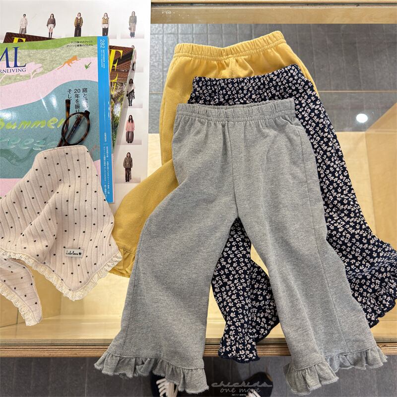 【海外からの取り寄せ】ins 春新作 子供服 女の子 フリル ロングパンツ ラッパズボン カジュアル 可愛い ボトムス 3色 #[ckd1095703_14800]【送料込み】【260426】