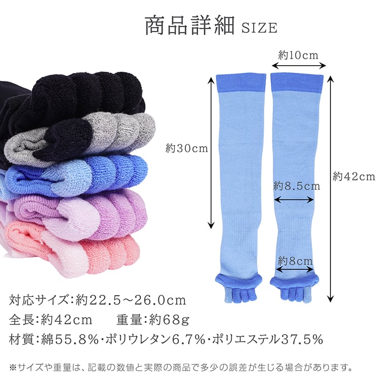 五本指ハイソックス ロング 足指セパレーター 足指広げ フリーサイズ リラックス フットケア 洗える