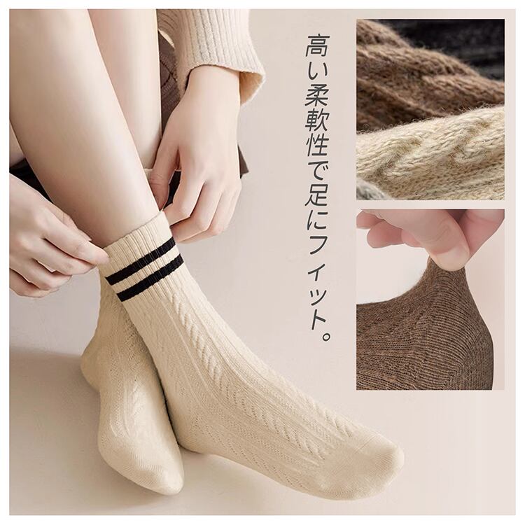 靴下 ソックス レディース 3色組 23-26cm ウール 毛混 ナイロン 秋冬 暖かい 防寒 冷え対策 保温 かわいい