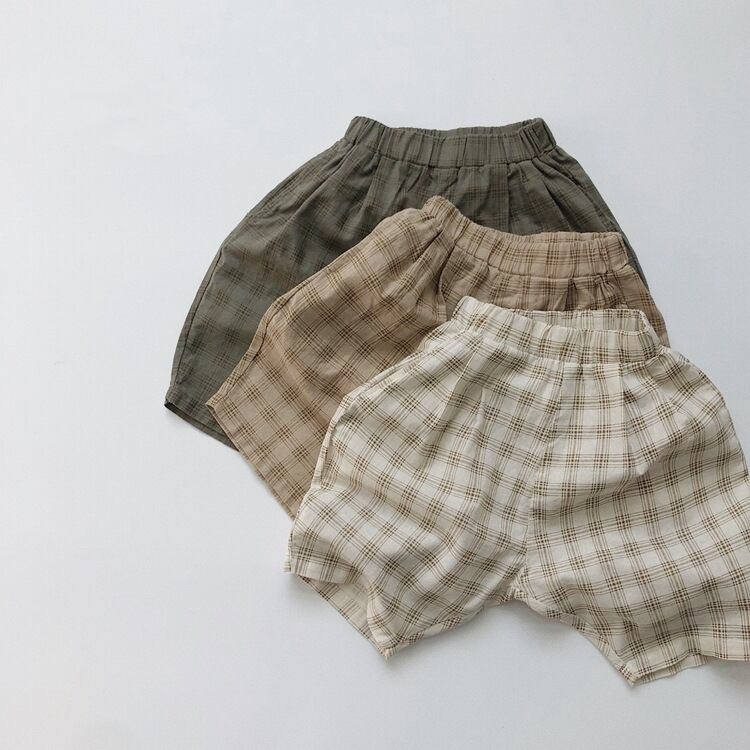 【海外からの取り寄せ】ins 夏新作 子供服 カジュアル リネン ショートパンツ チェック柄 ボトムス 選べる3色 可愛い #[ckd1091632_18200]【送料込み】【260426】