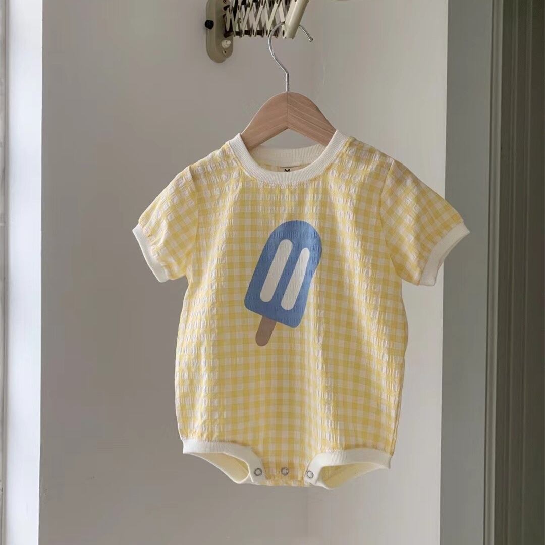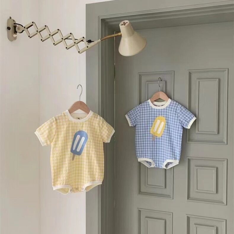 【海外からの取り寄せ】ins 夏新作 ベビー服 アイスクリーム チェック柄 半袖 ロンパース 可愛い おしゃれ 柔らかい #[ckd1091849_12100]【送料込み】【260426】
