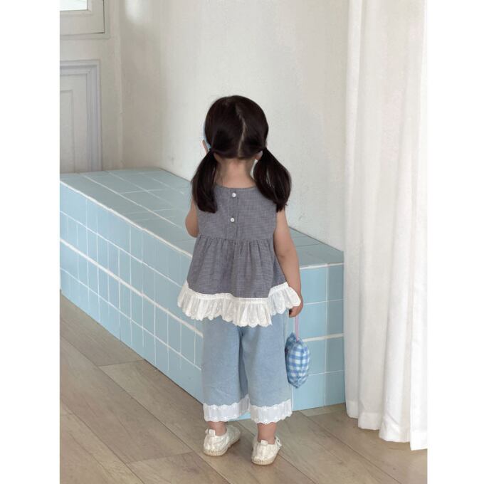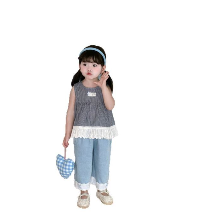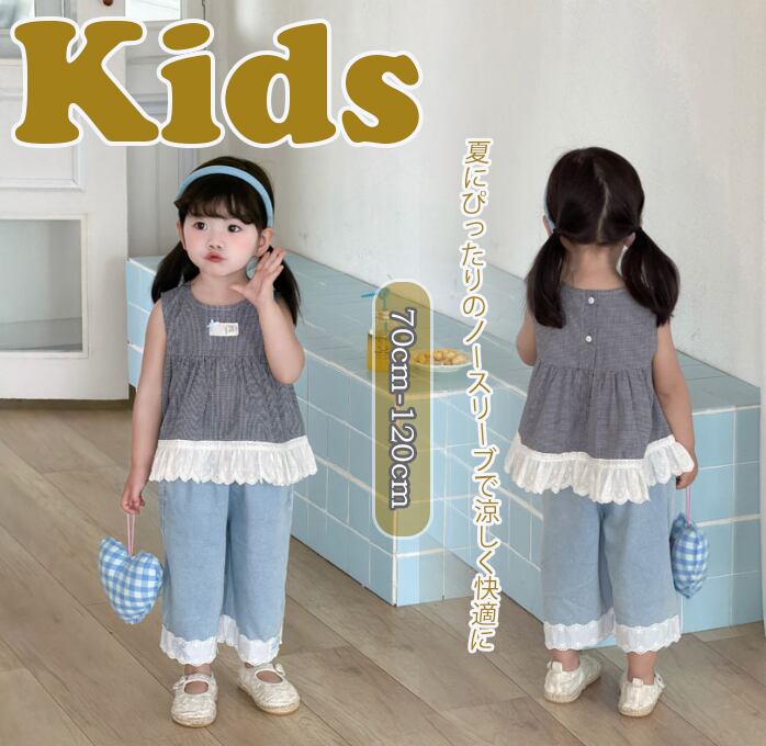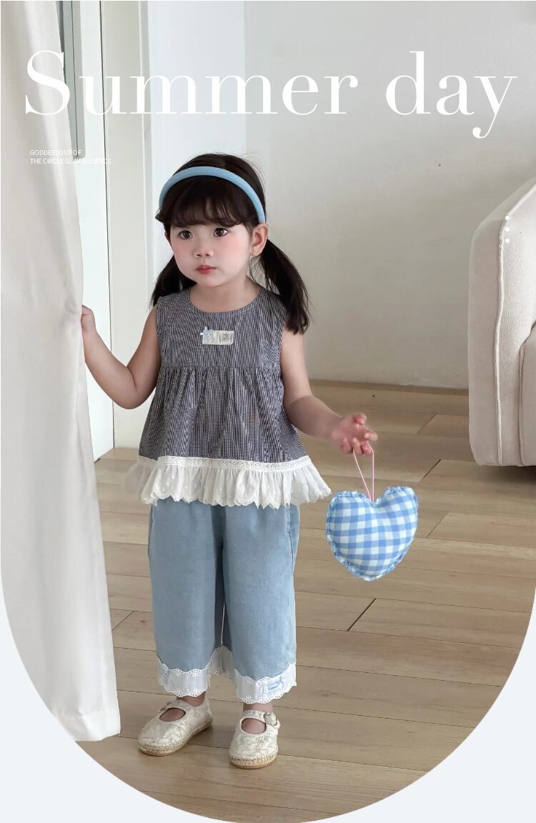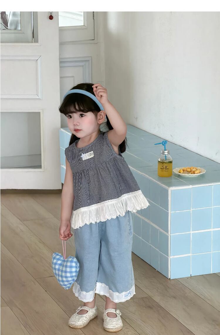 【海外からの取り寄せ】2026新作 韓国子供服 子供 ノースリーブ トップス ジーンズ デニム フリル かわいい 通園 通学 #[kids918_18800]【送料込み】【260426】