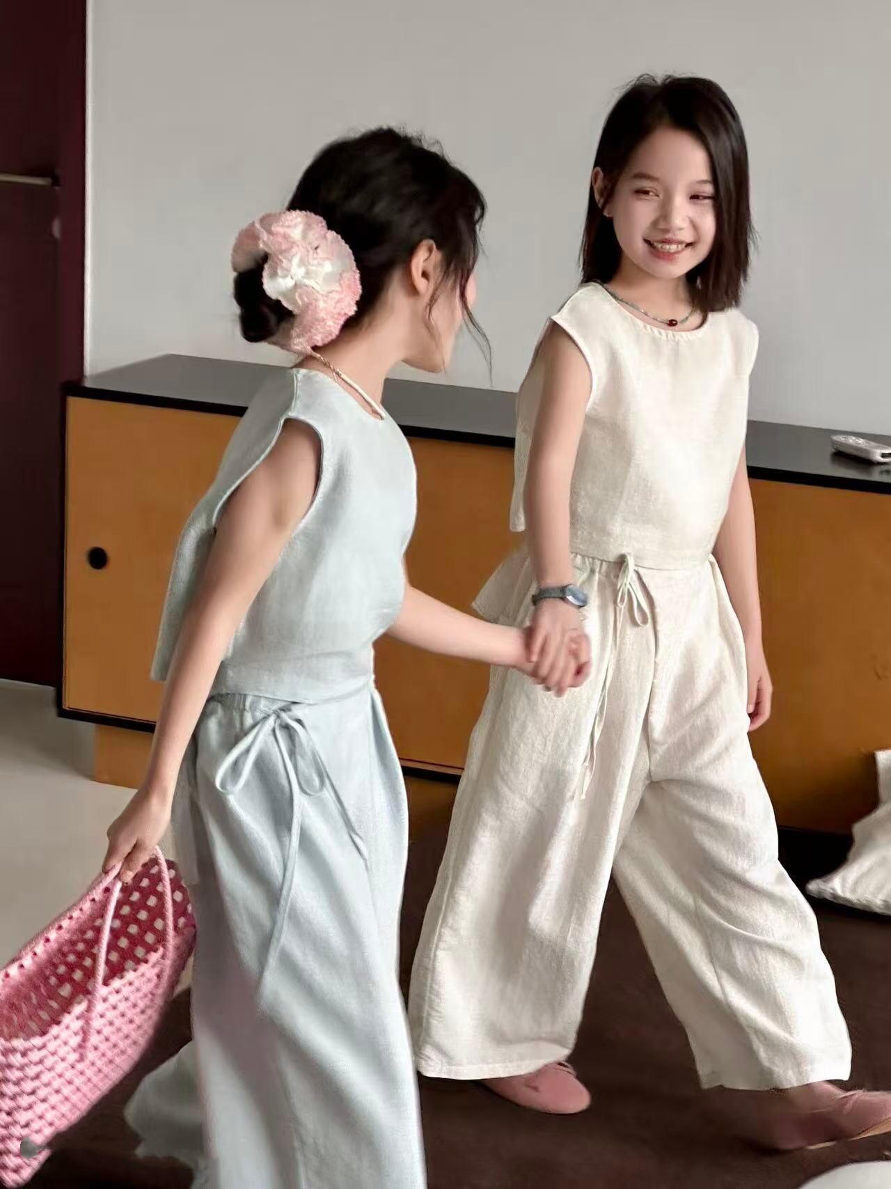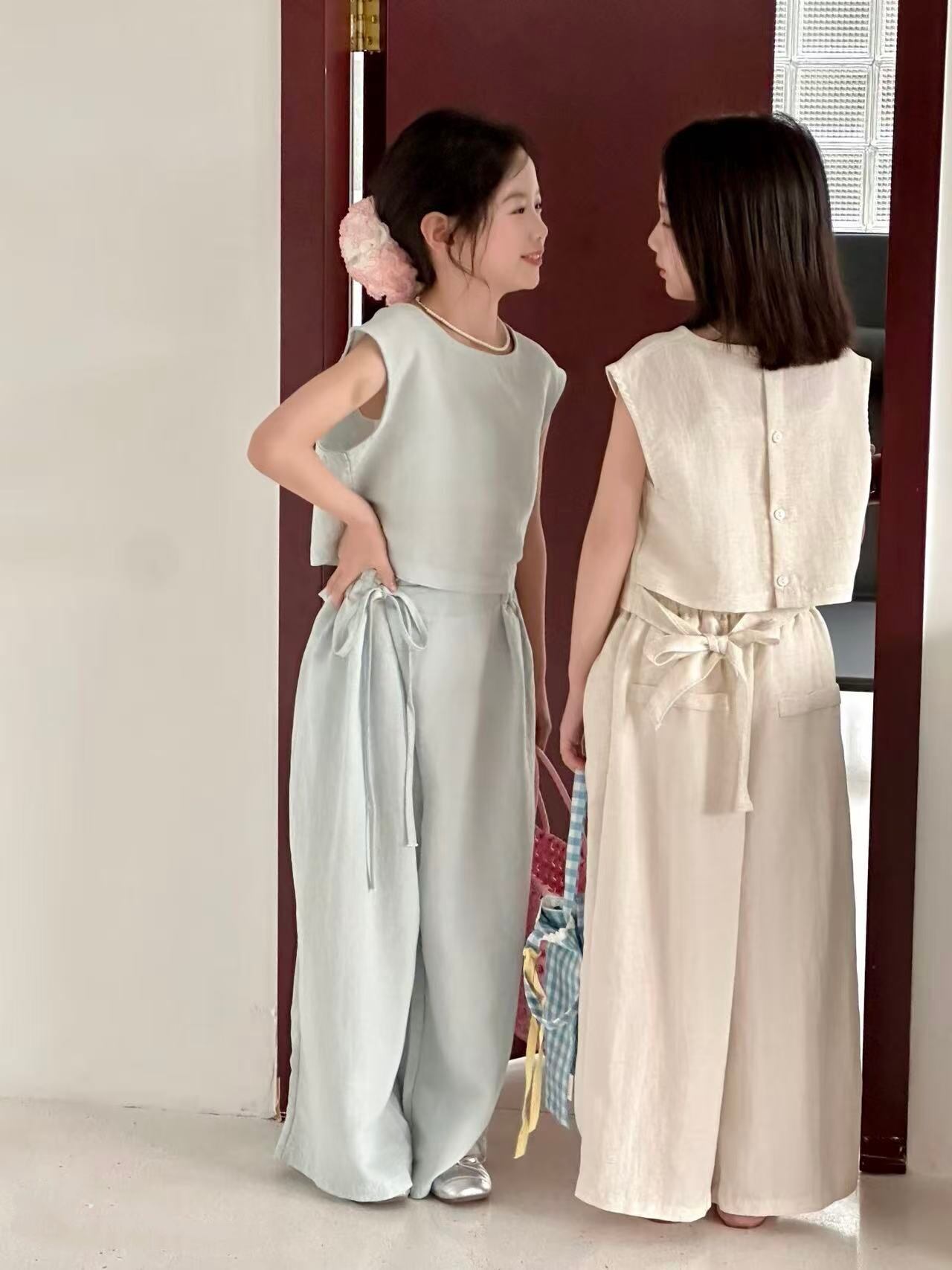 ・ワイドシルエットなパンツとノースリーブブラウスのセット。