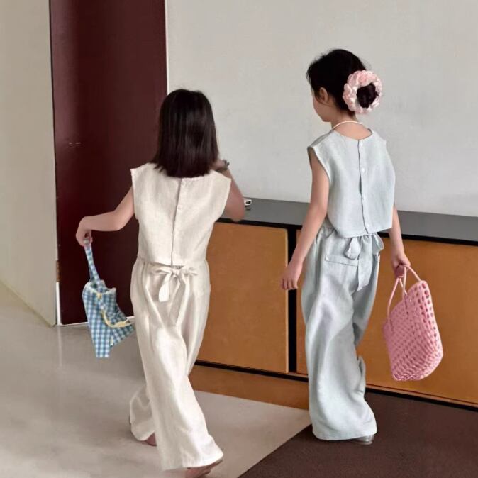 ワイドシルエットなパンツとノースリーブブラウスのセット