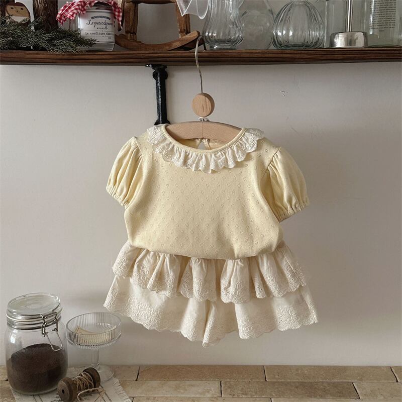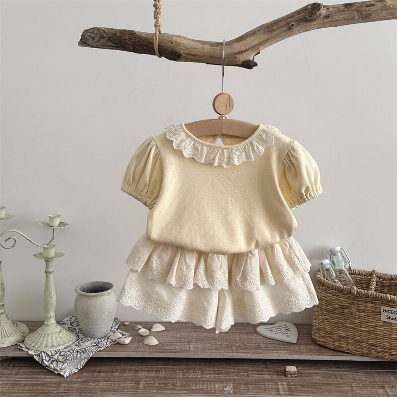 【海外からの取り寄せ】2026夏新作 女の子 レースドッキング セットアップ 半袖 Tシャツ ブルマー 子供服 可愛い リボン #[ckd1095719_28500]【送料込み】【260429】