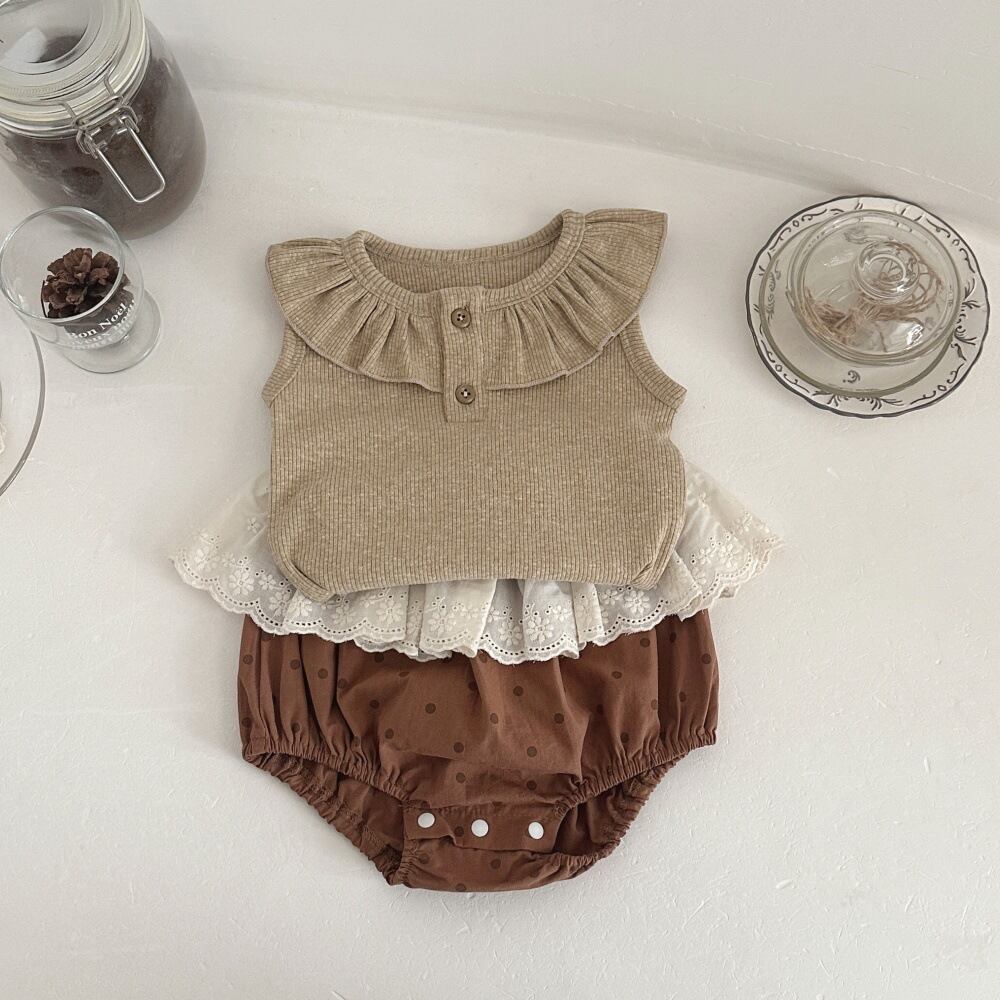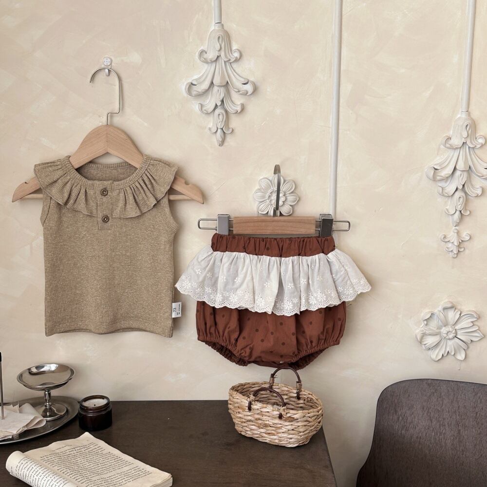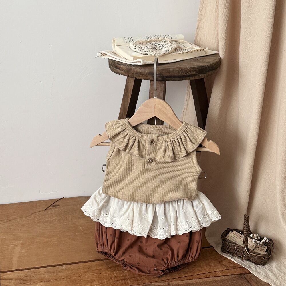 【海外からの取り寄せ】2026夏新作 女の子 ラッフルカラー セットアップ ベスト レース ブルマー 子供服 可愛い おしゃれ #[ckd1095717_23100]【送料込み】【260429】