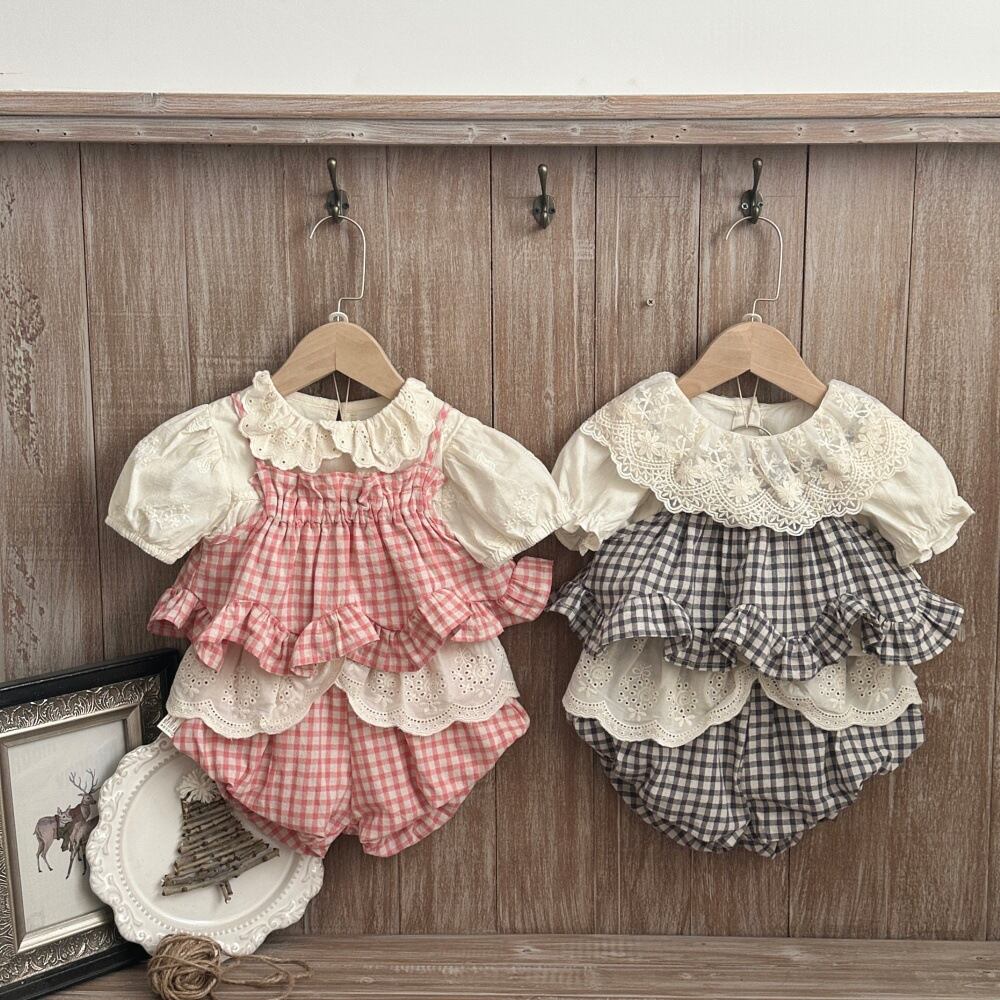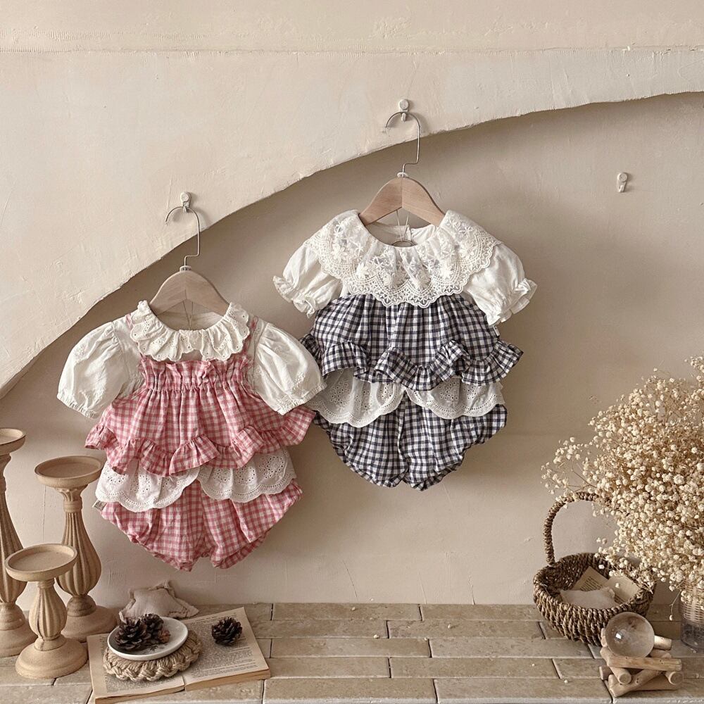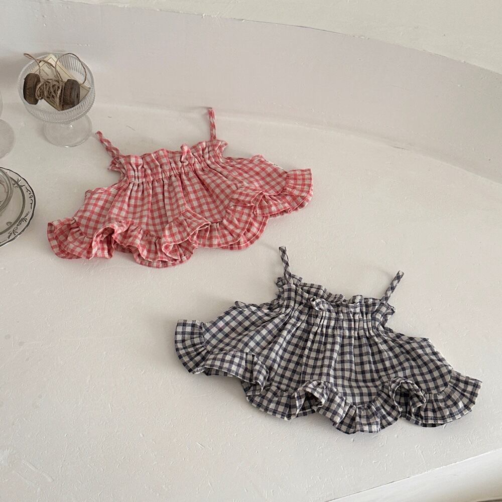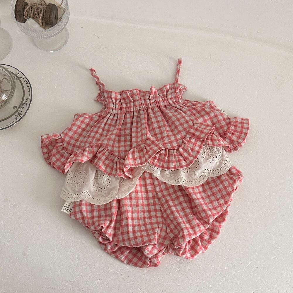 【海外からの取り寄せ】2026夏新作 女の子 キャミソール チェック柄 セットアップ ベスト ブルマー 子供服 可愛い レース #[ckd1095712_21100]【送料込み】【260429】