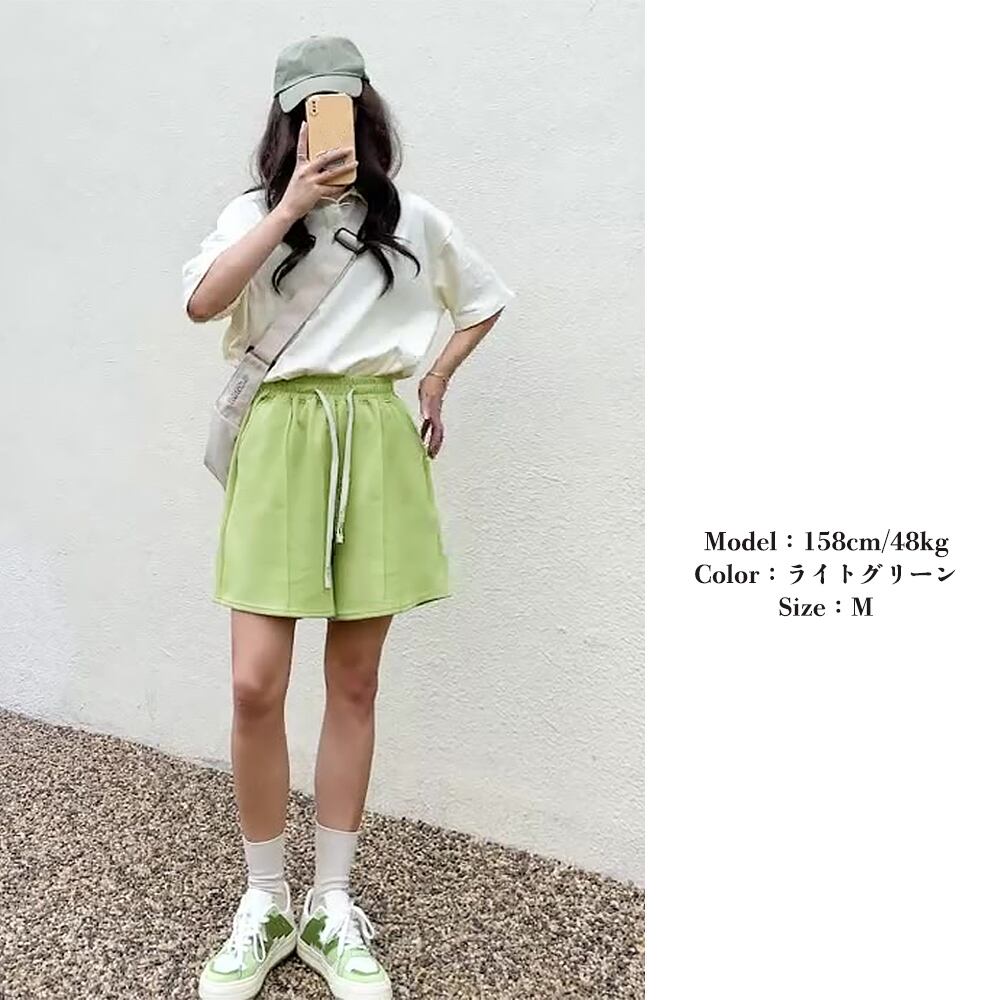 レディース センタープレス カラー 短パン おしゃれ ハイウエスト Aライン 美脚 部屋着 運動服 ダンス ホットパンツ