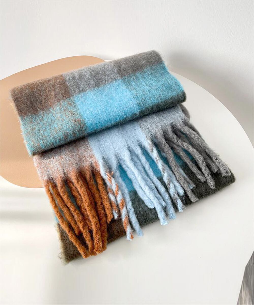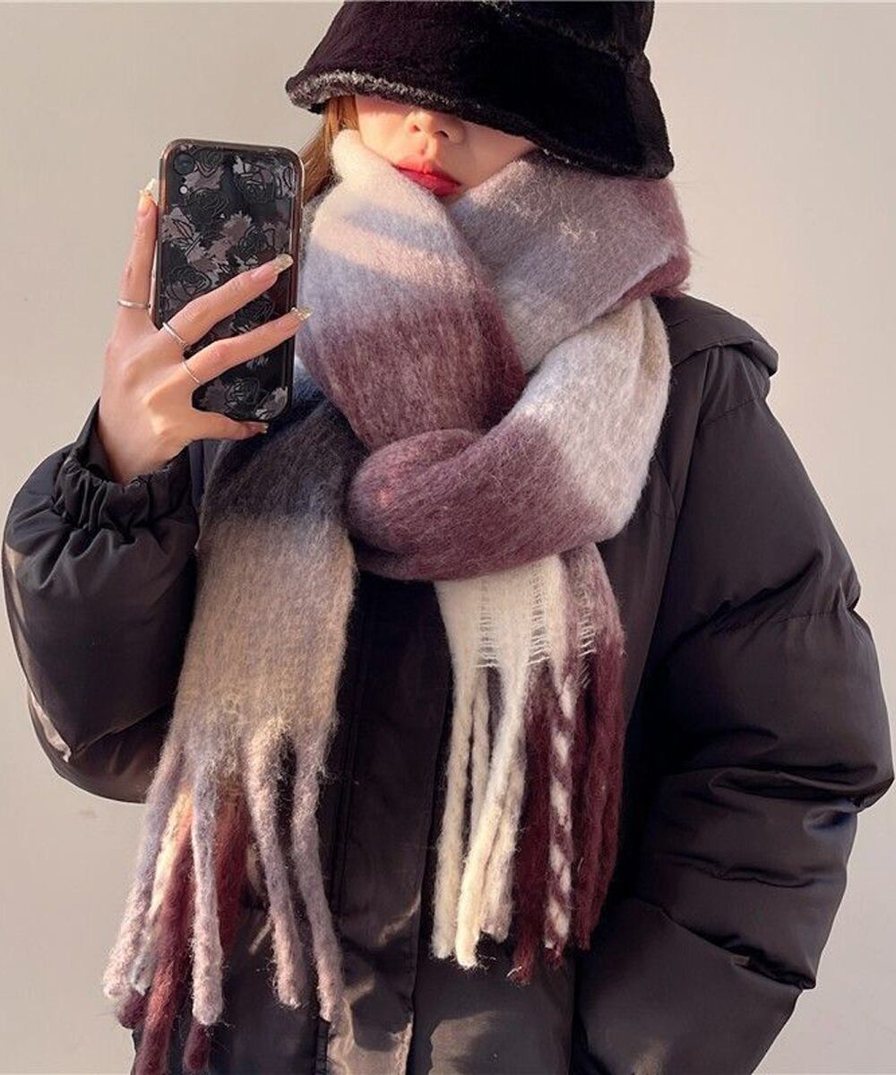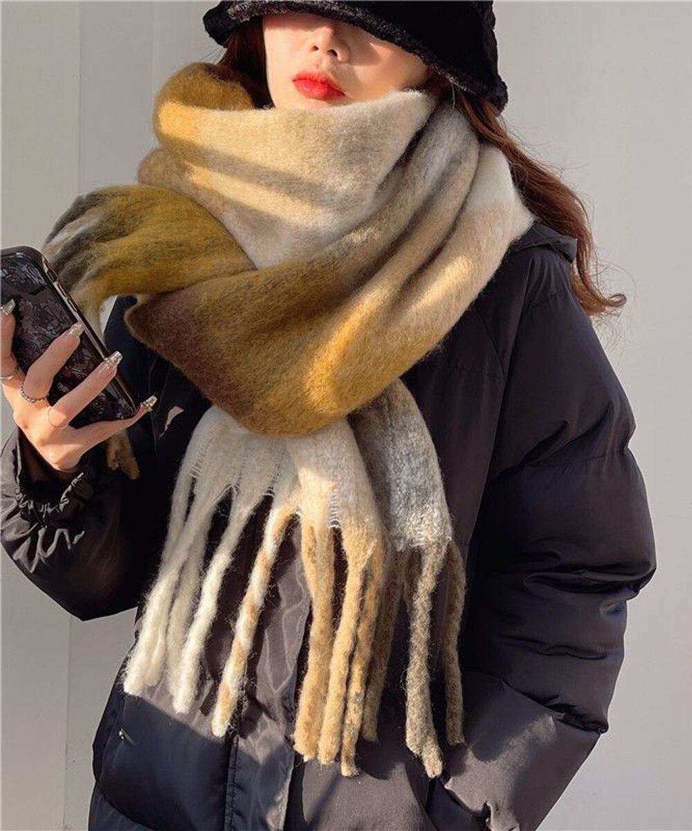 お洒落膝掛け可愛い タッセルマフラー女 モヘアタッチ暖かい