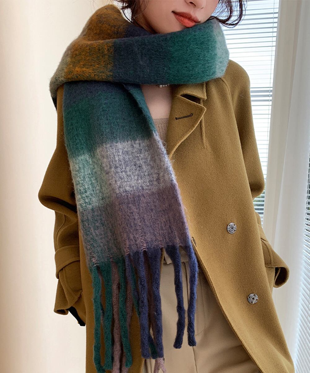 日頃のシンプルコーデに加えるだけで鮮やかで華やかに、秋冬の大人の着こなしに彩りをプラスしてくれるチェック柄ストールマフラー