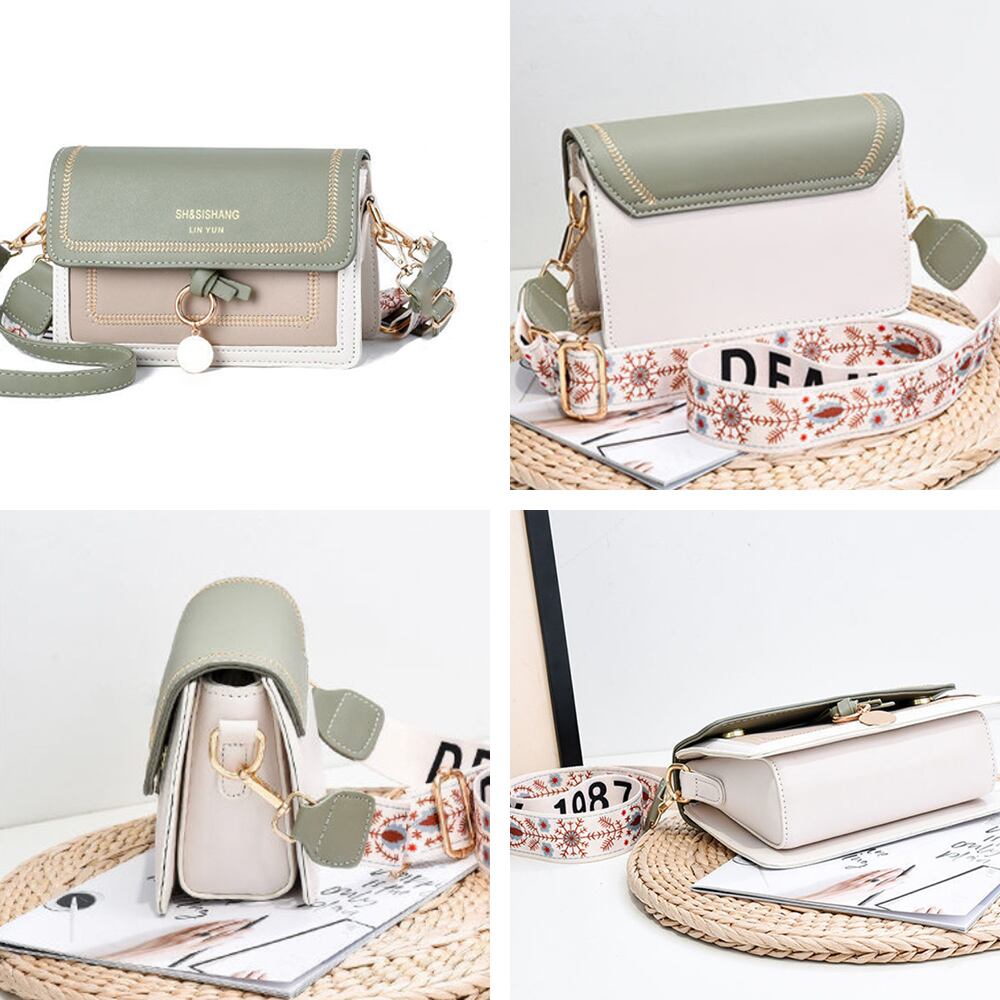 ワイドストラップ バイカラー 韓国スクエアBAG カジュアル 斜めがけバッグ PUレザーメッセンジャーバッグ 大人可愛い