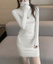 レディース タートルネック ニットドレス おしゃれ 秋冬ボディコンワンピ 無地 スリムフィット 韓国 セクシーワンピ細身