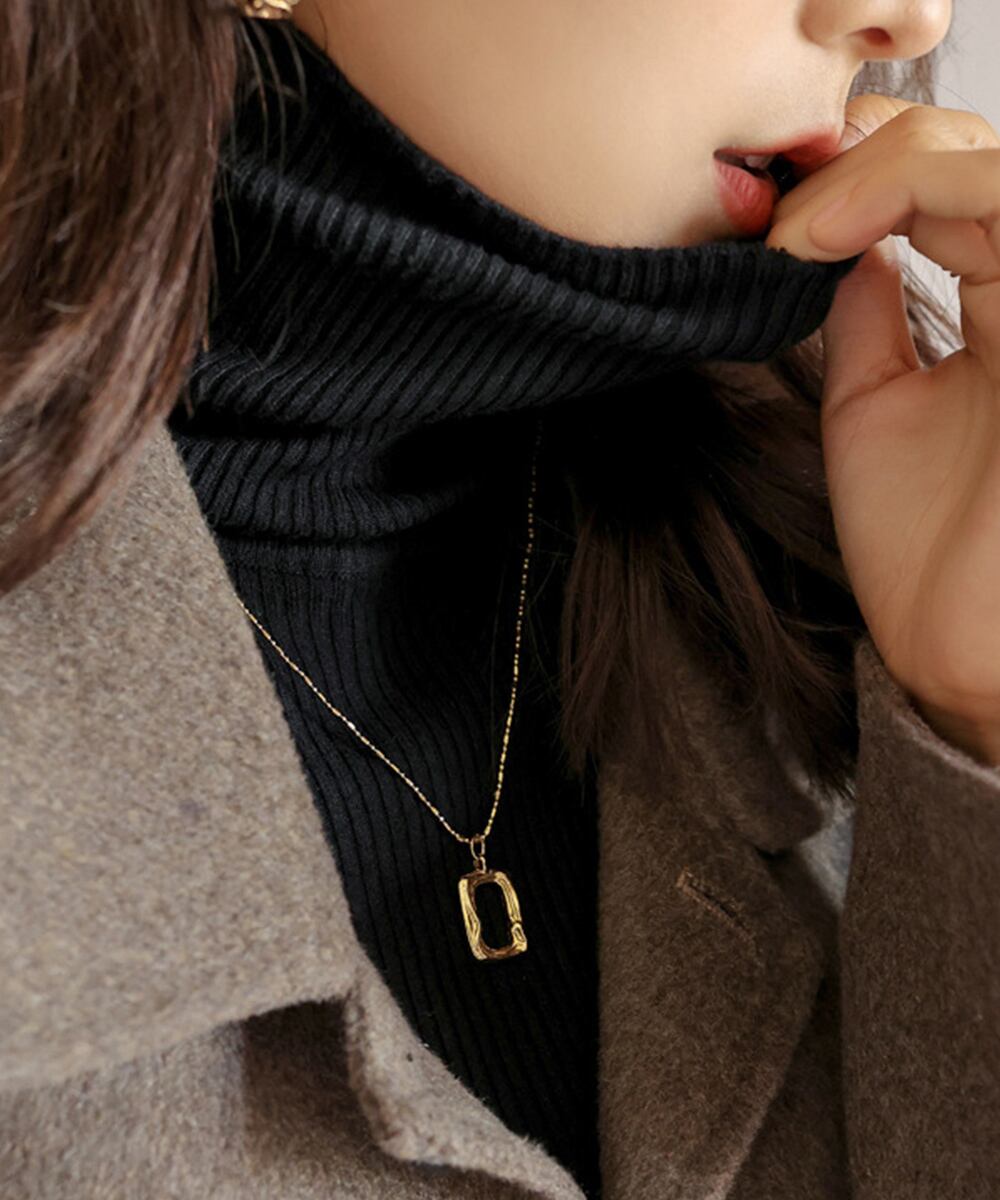 タートルネックでさりげなく大人っぽさを増し、首周りを暖かく包み込む