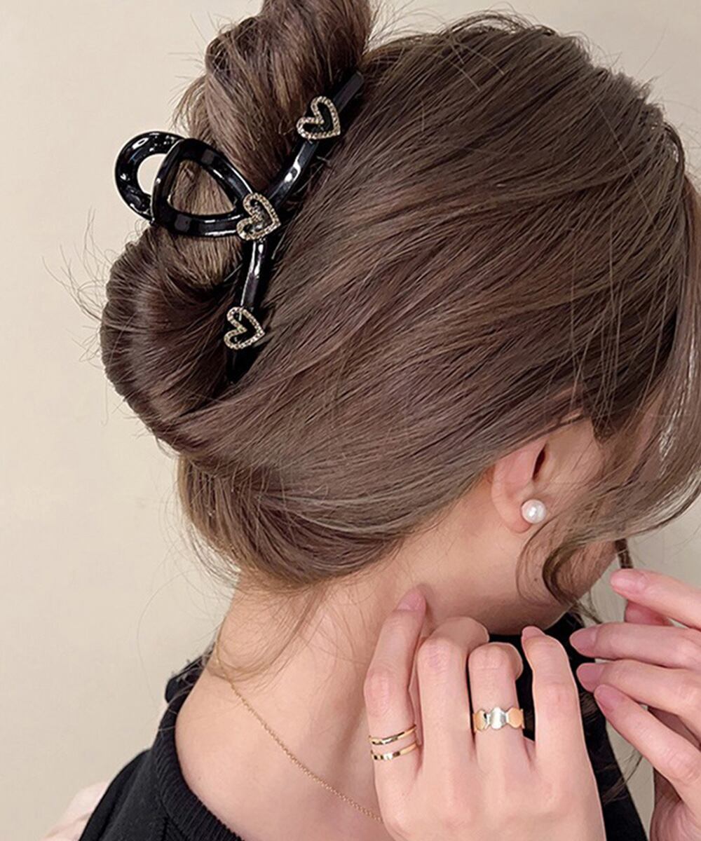 レディース 可愛い ヘアアクセサリー ハートモチーフ ワニクリップ まとめ髪 簡単 ヘア小物 オフィスカジュアル髪飾り