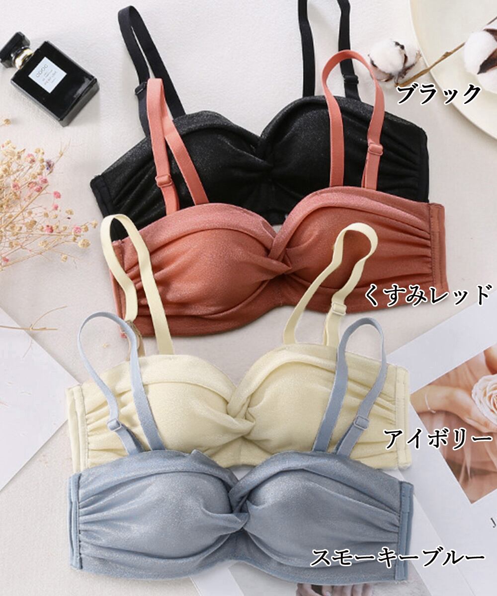 ブラジャーショーツセット バスト盛れる ツイストブラショーツセット 小胸超盛り 下厚 ワイヤレスブラ 脇高ブラ 女性下着