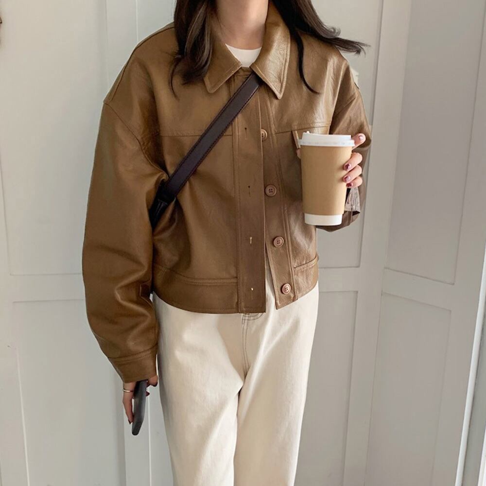 レディース オーバーサイズ フェイクレザージャケット ショート丈 長袖アウター 体型カバー かっこいいブルゾン 韓国秋冬