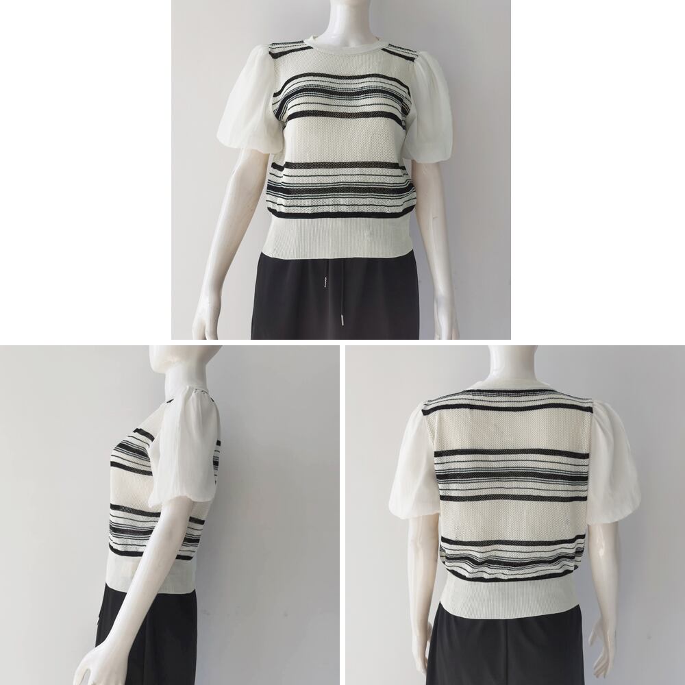 【日本倉庫からの発送】 サマーニット異素材切り替えニットトップス #[85YN-900505_16200]【送料込み】【250712】