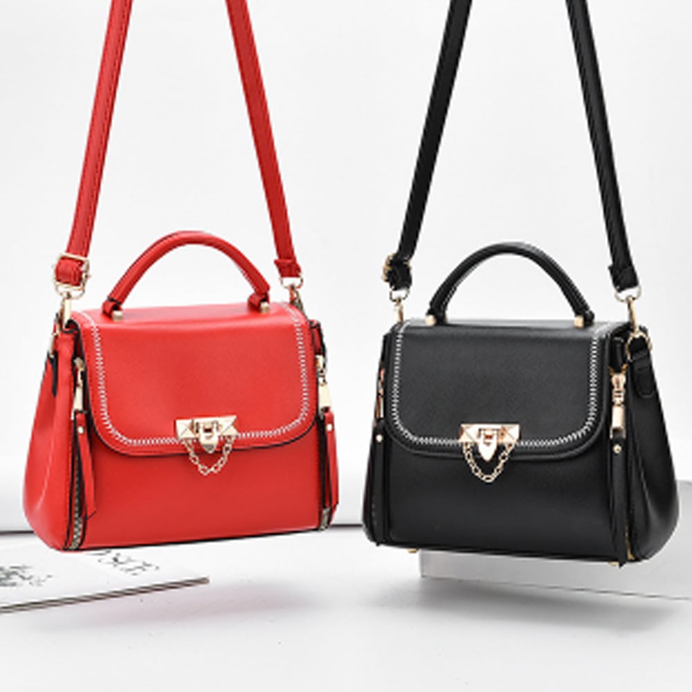 小ぶりながらも最低限の荷物を収納できるPUレザーショルダーバッグです