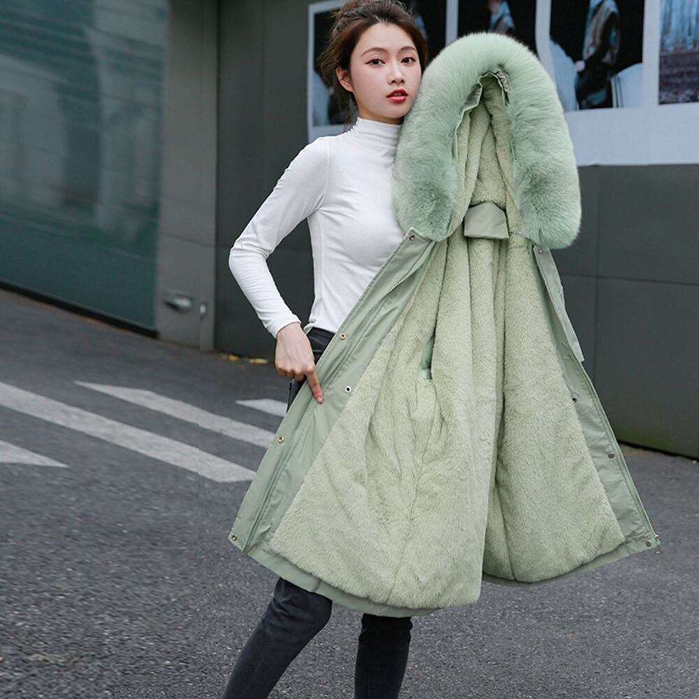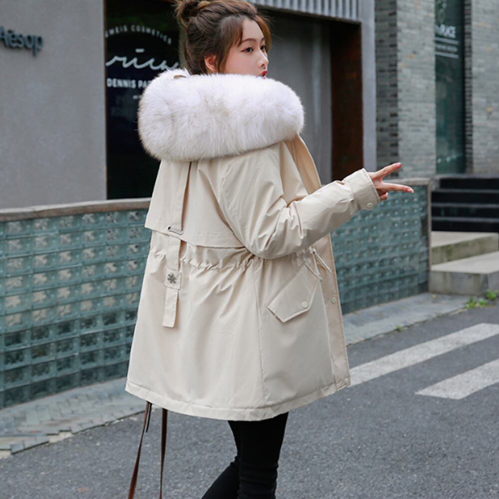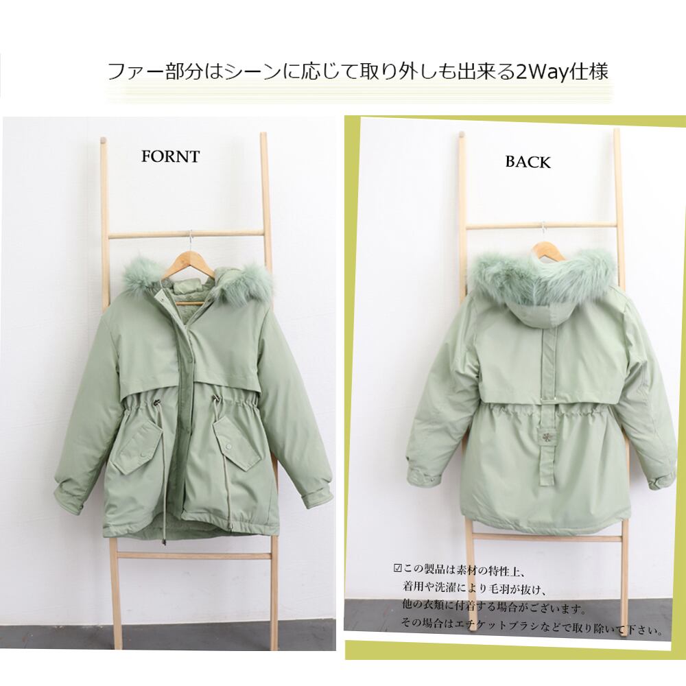 フーデッドコートファー付き フェイクファー パーカーコート ウエストマーク アウター あったか 防寒ジャンバー 韓国6色