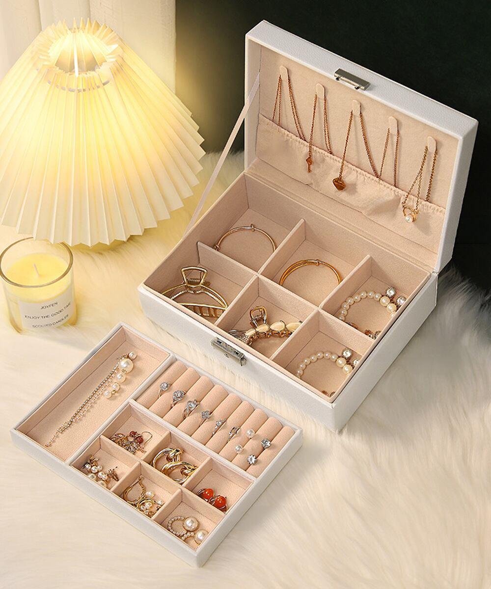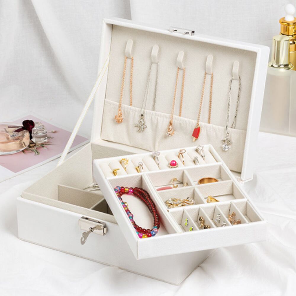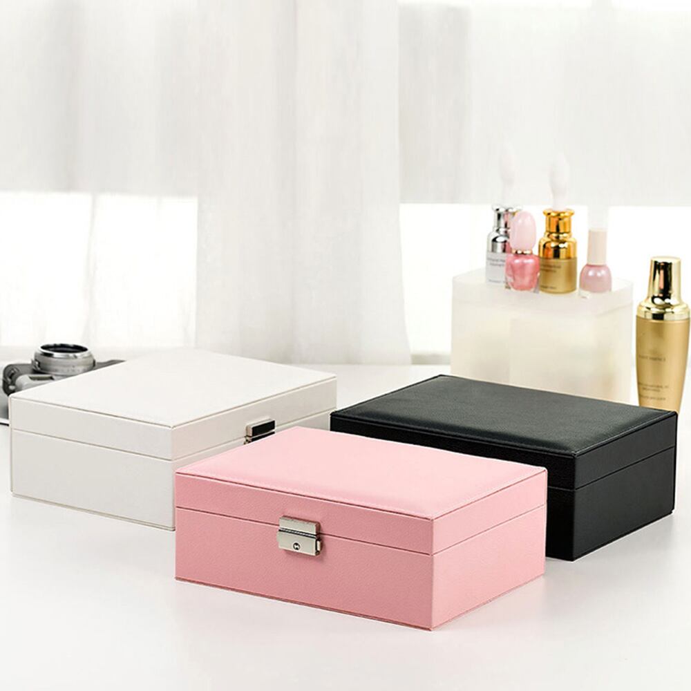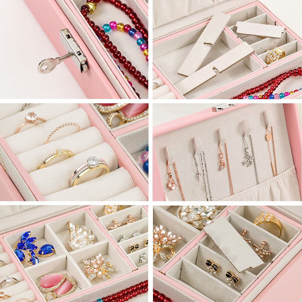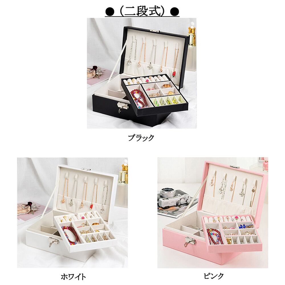 大容量 携帯 韓国 アクセサリーケース 2層 鍵付き PUレザー 収納box 指輪 ピアス イヤリング 首飾り収納ケース