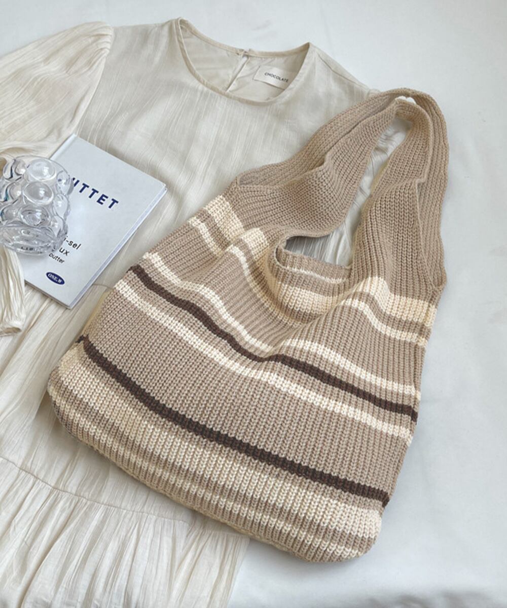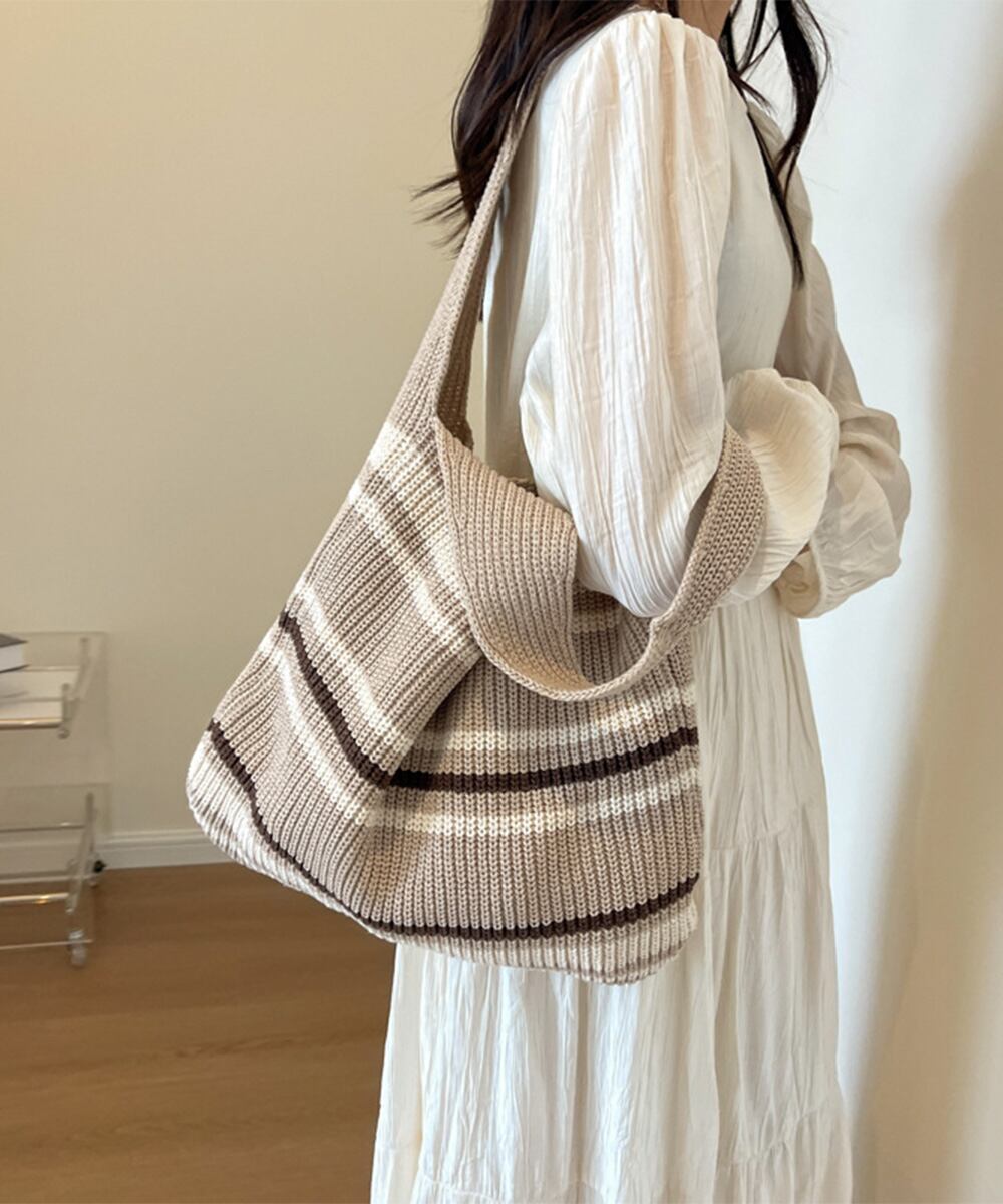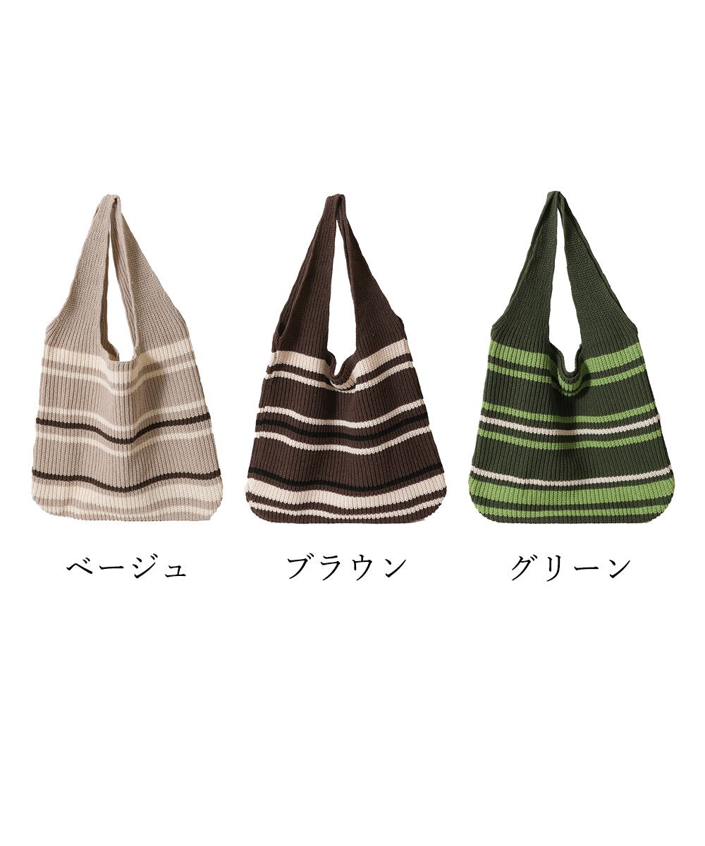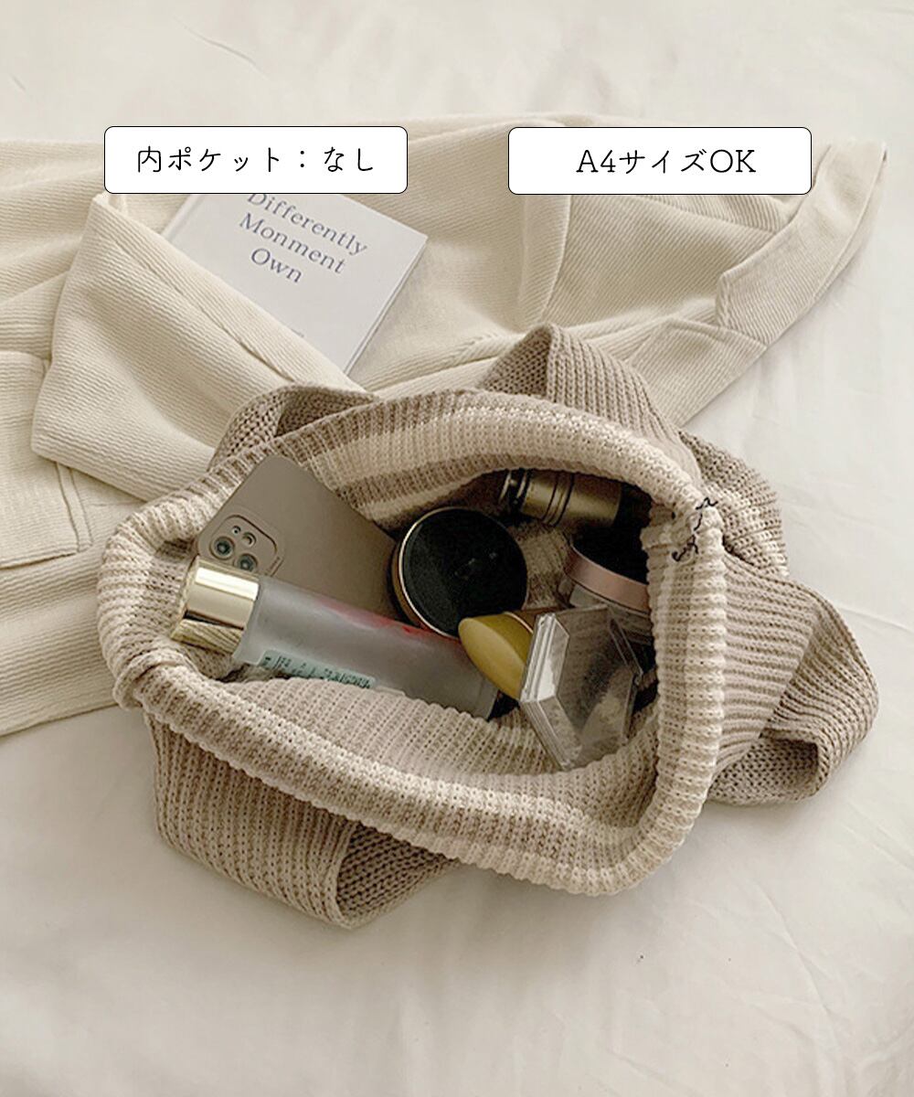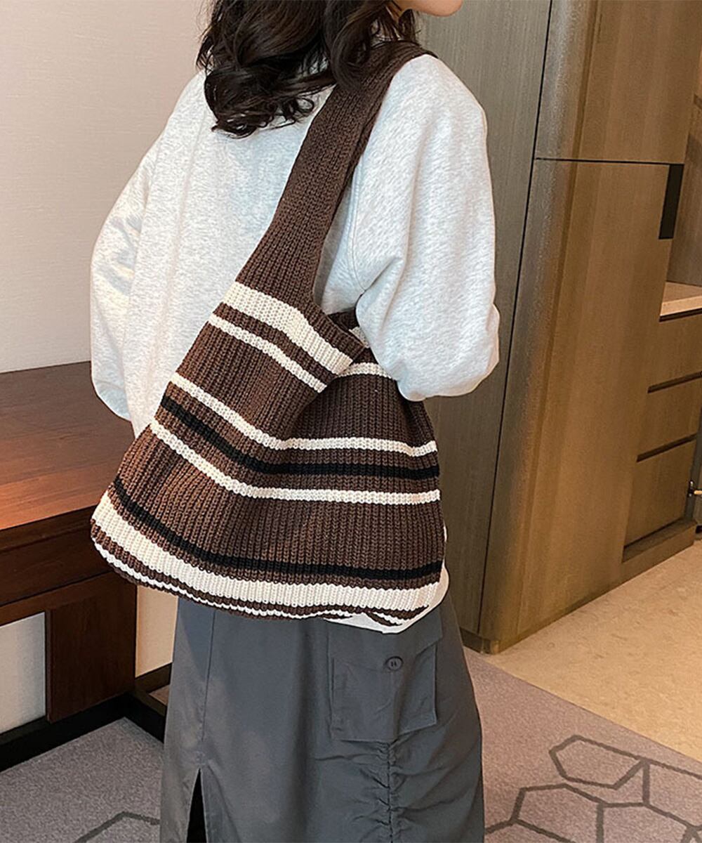 ボーダー柄がアクセントになり、コーデにこなれ感をプラスするニットトートバッグです。